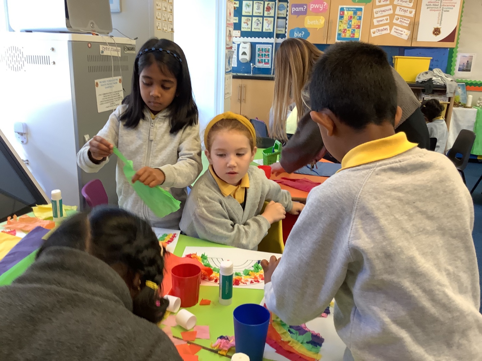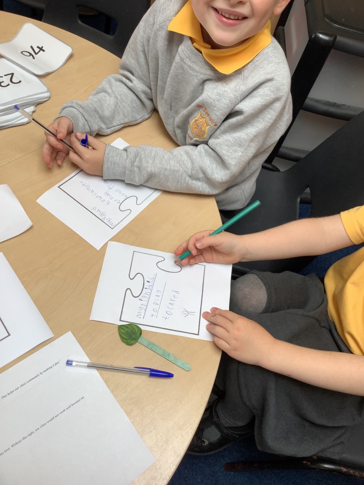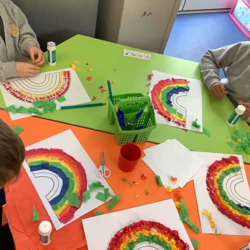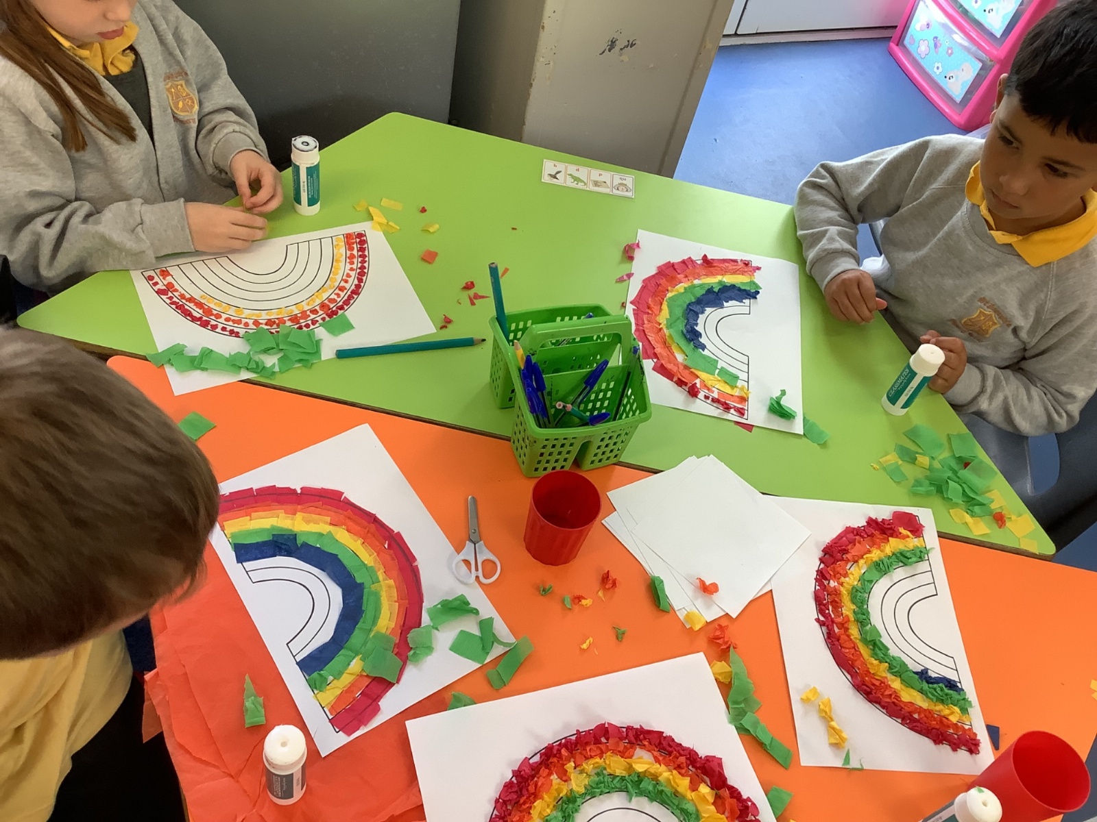 St Teilo had a lovely first week back. In RE we have started looking at Noah's Ark and how the rainbow was God's promise. We made some beautiful rainbow which may or may not be used in a certain assembly! In literacy we have been looking at adjectives and using them in sentences. In maths we have been looking at reading and writing numbers to 100. In context we looked at our rights and made puzzle pieces to represent our class community.