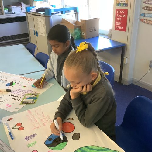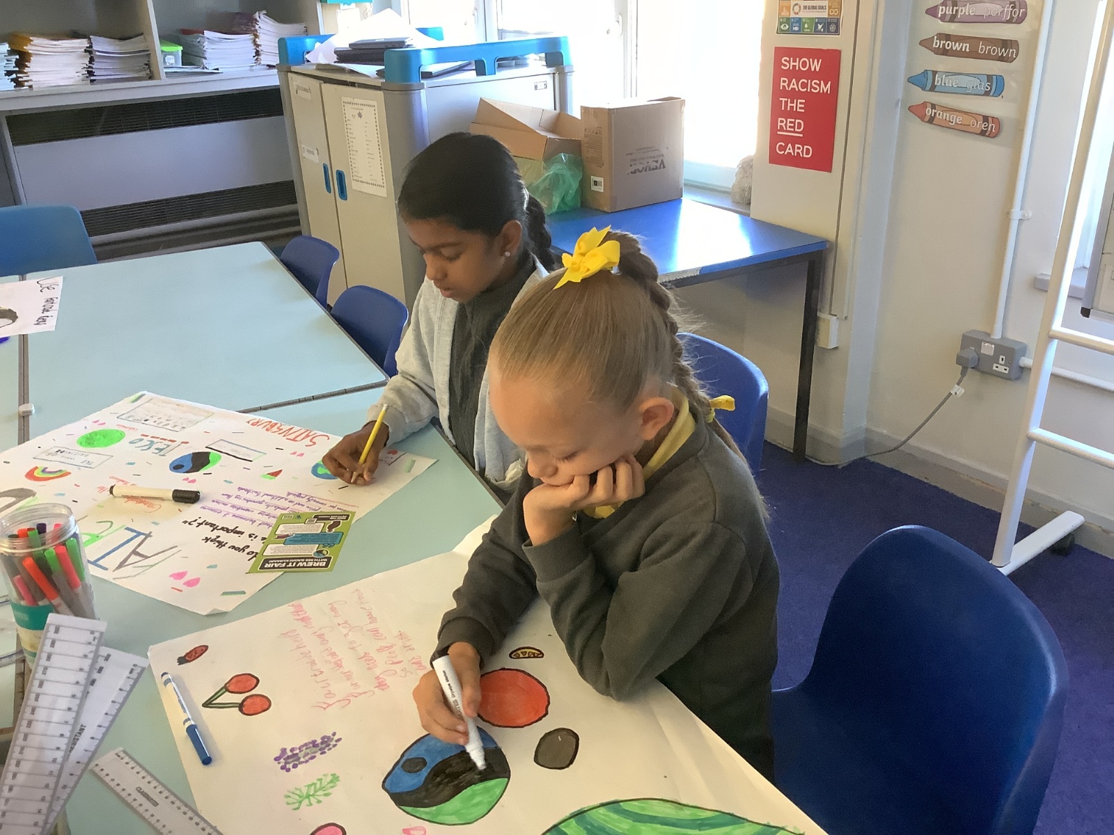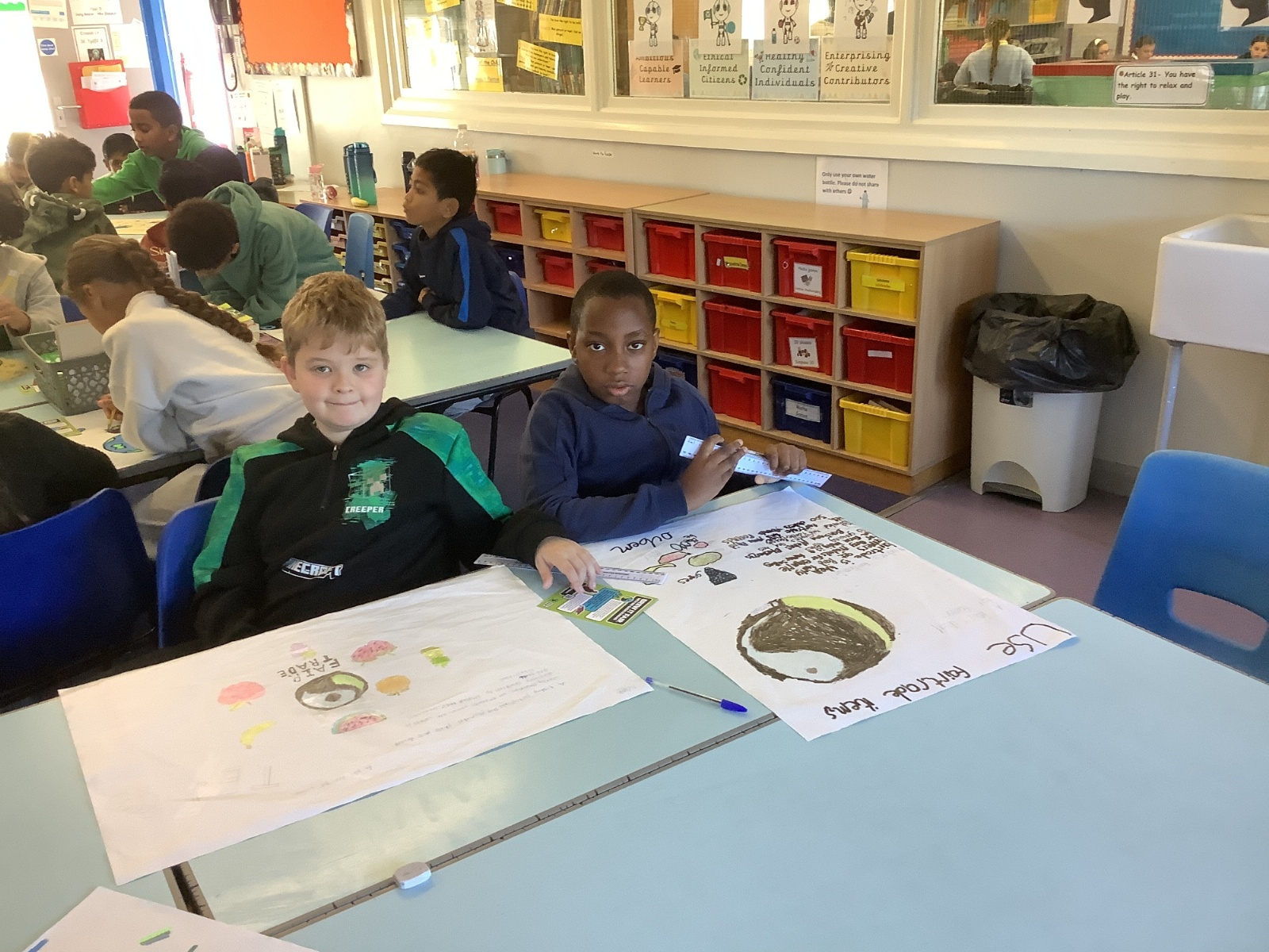 In RE, we learned about the Sinai Covenant and the Ten Commandments and had a class discussion about them. In Maths, we continued working on reading thermometers and understanding negative numbers. In Literacy, we read more about Auggie and his new school, described his feelings, and used adjectives to make our sentences more detailed. We also joined a Zoom meeting about Fairtrade and created our own posters to encourage people to buy more Fairtrade products.