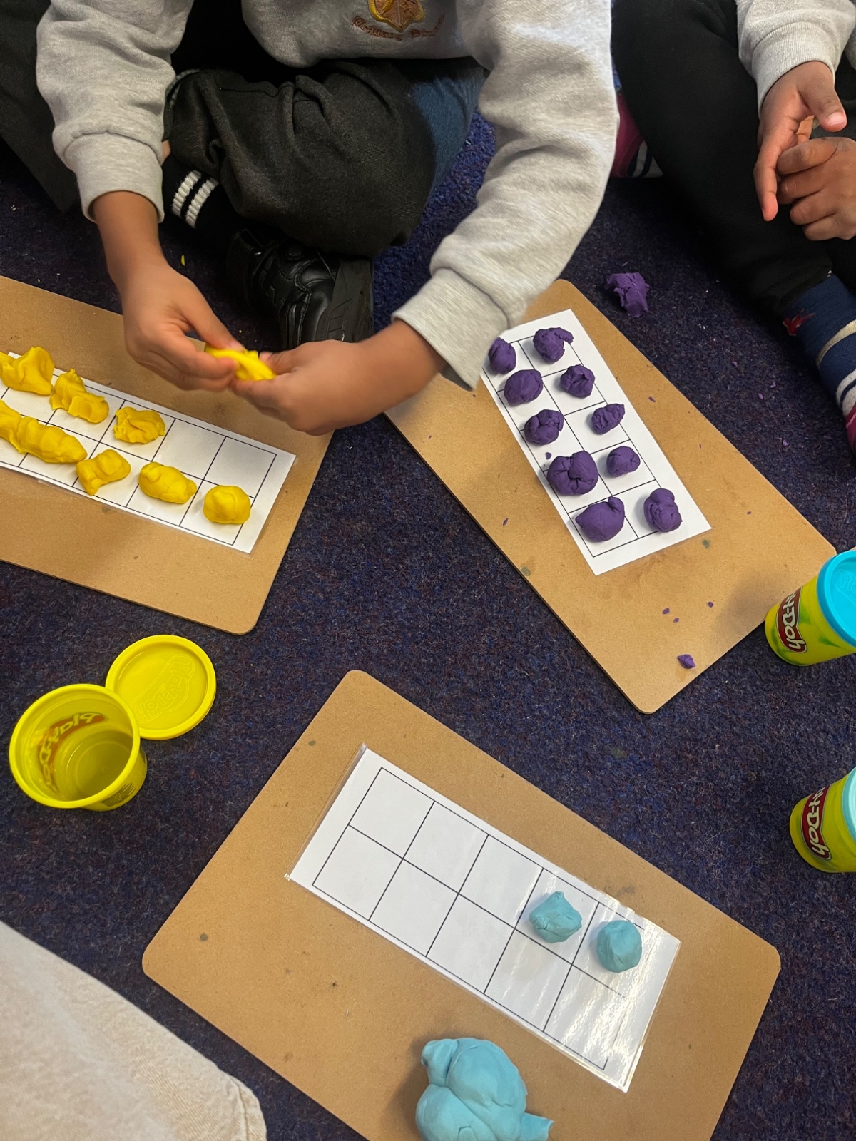 In Maths, we have been counting up to 20 and joining in with finger rhymes, which have been supporting both our number skills and fine motor skills.