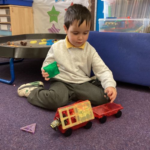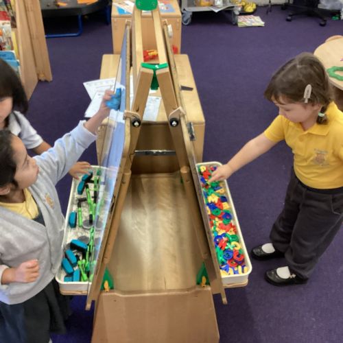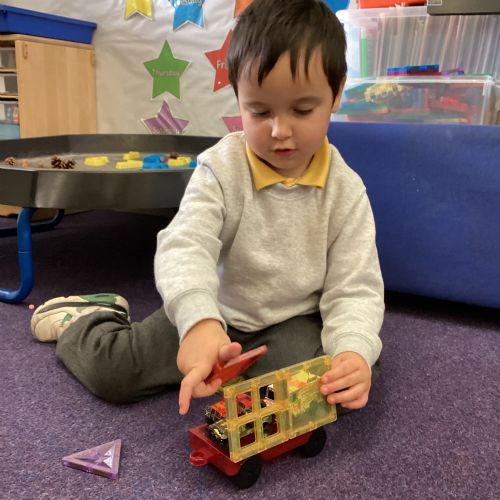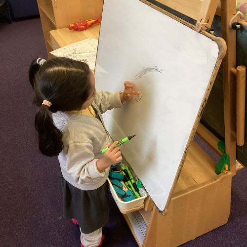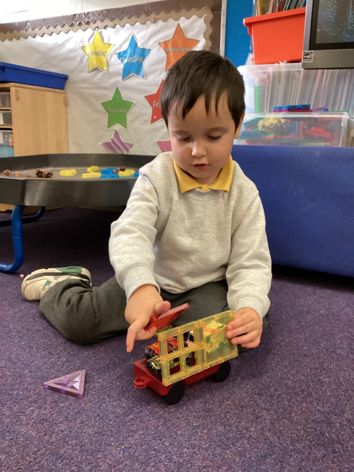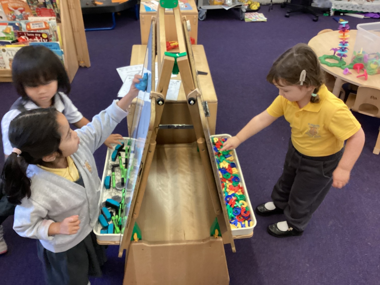 In maths, we have been using 2D shapes to create familiar pictures. During this exercise, we also practise using a glue stick to paste.