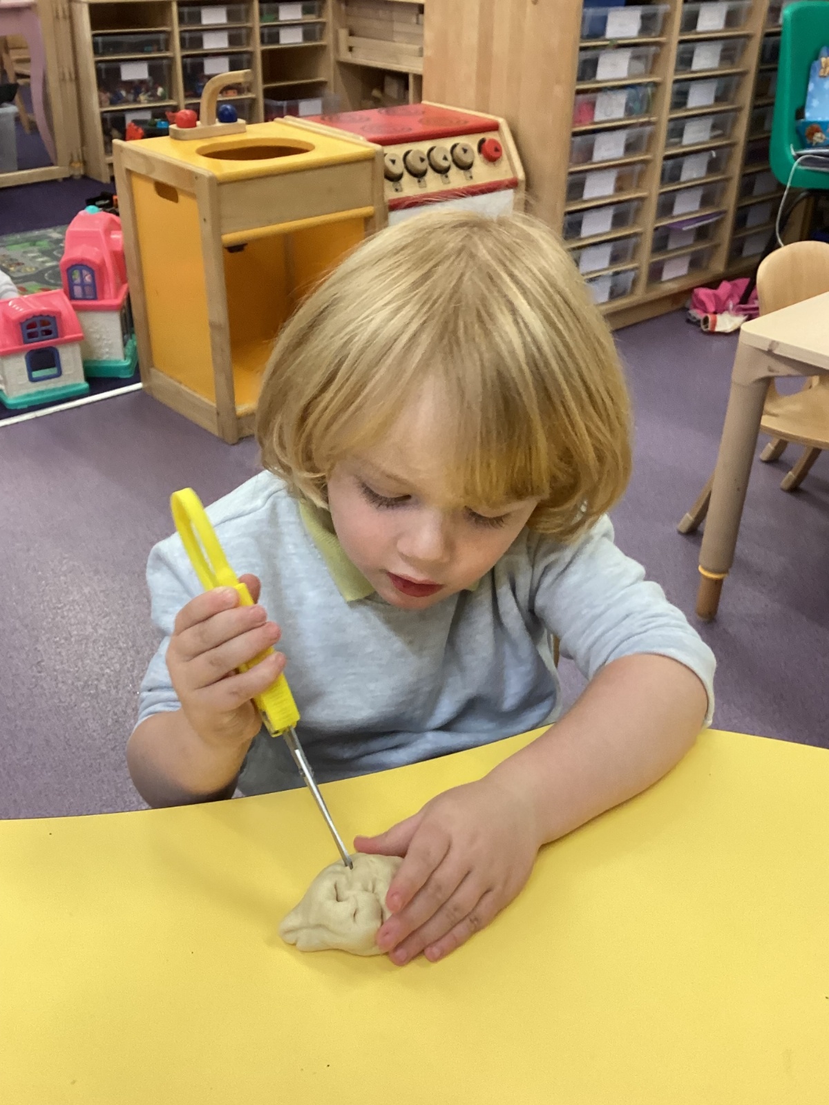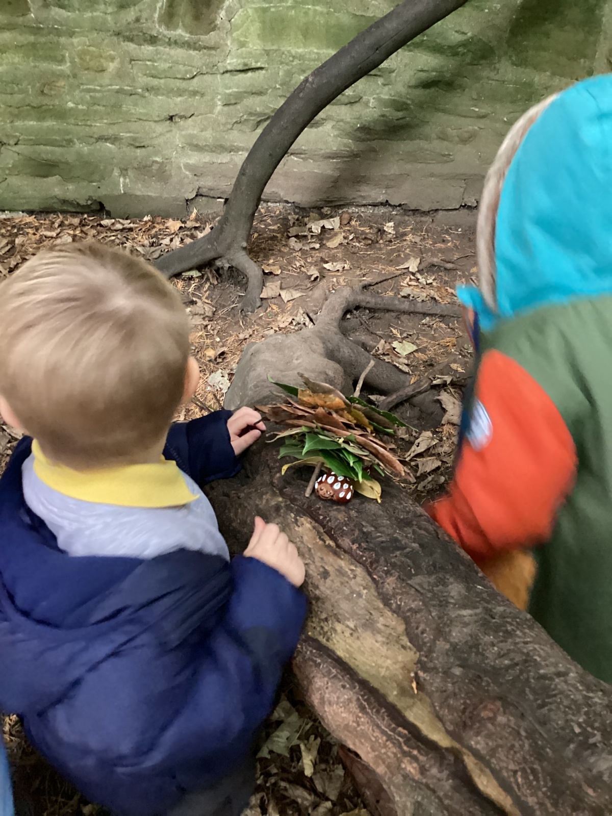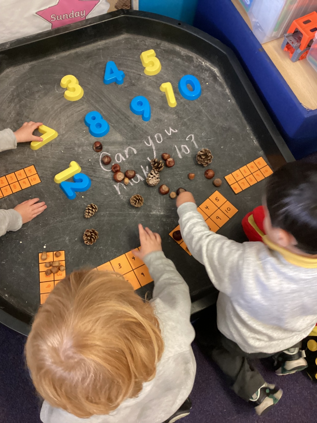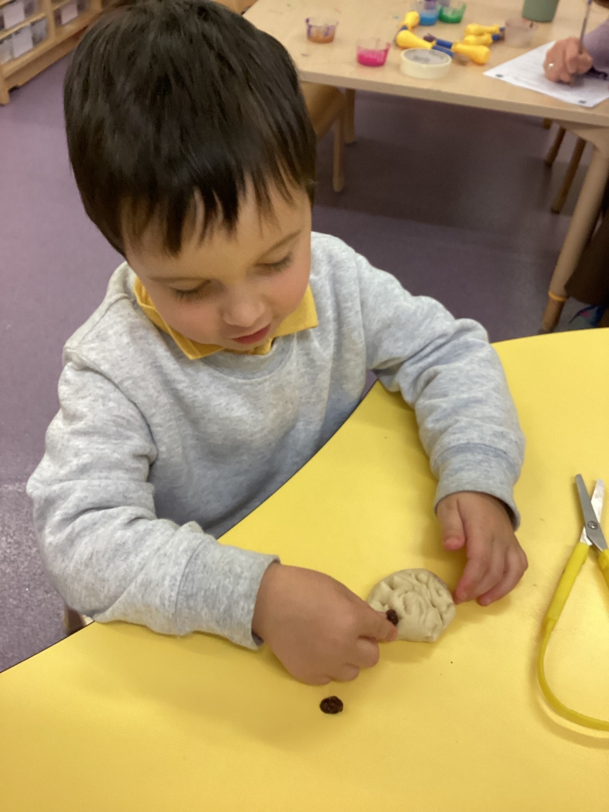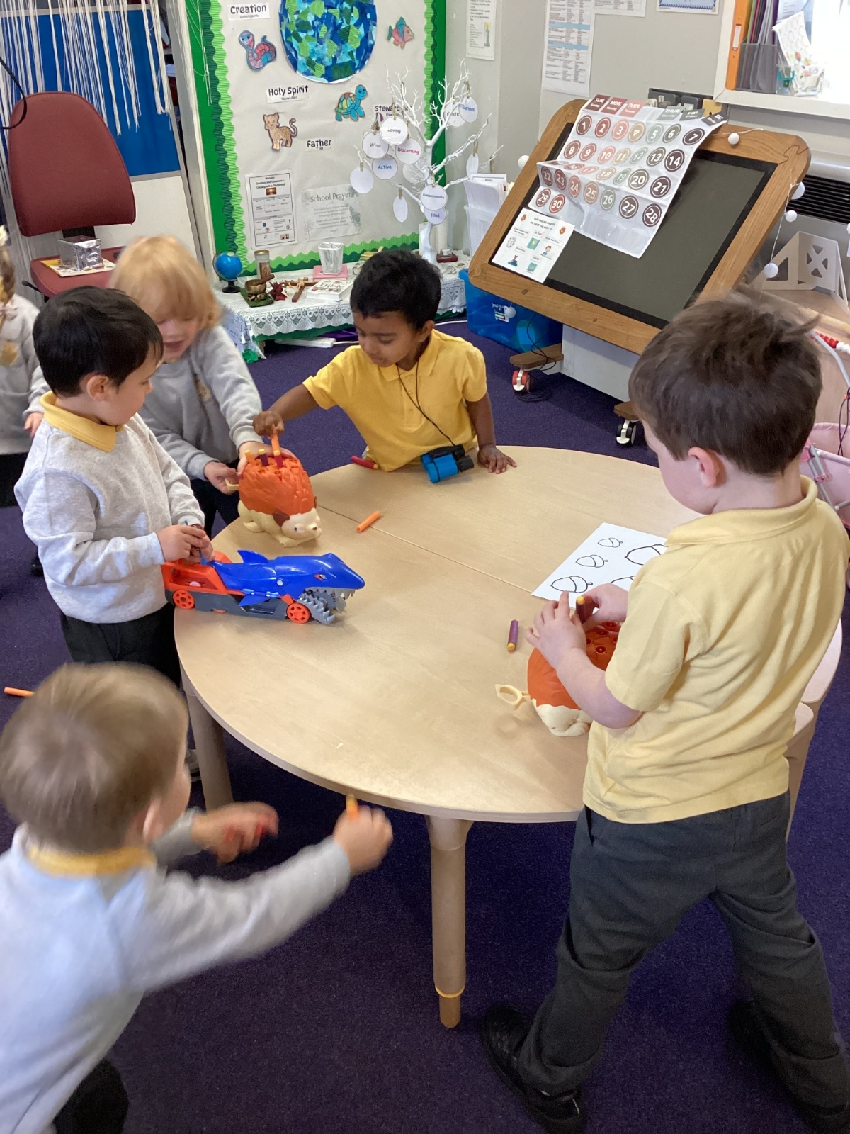 This week, we focused on a storybook about hedgehogs and hibernation, called "The Very Helpful Hedgehog." We discussed where a hedgehog lives, and what he might use for a bed. We used these natural materials to count and start to become familiar with Ten Frames. During our outdoor day, we practised den-building, finding and making cosy homes for our conker hedgehogs. To finish off a great week, we rolled, pinched and fine-tuned our scissor skills to cut bread dough and make hedgehog bread rolls!