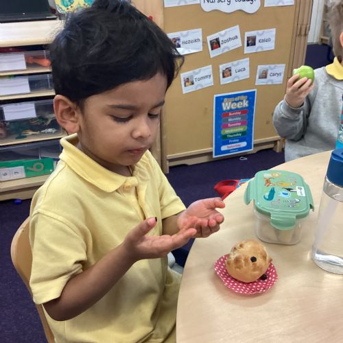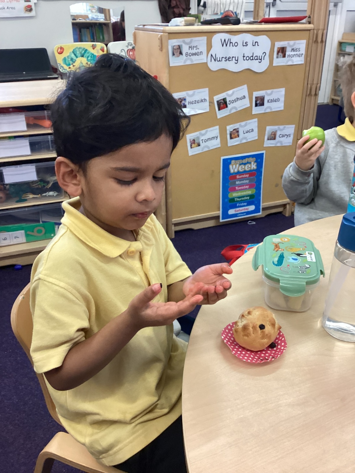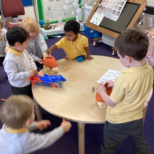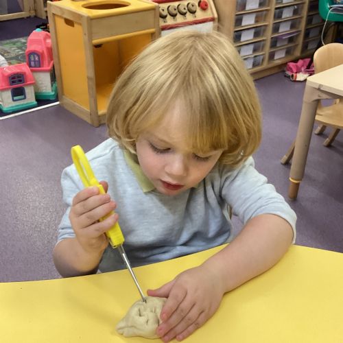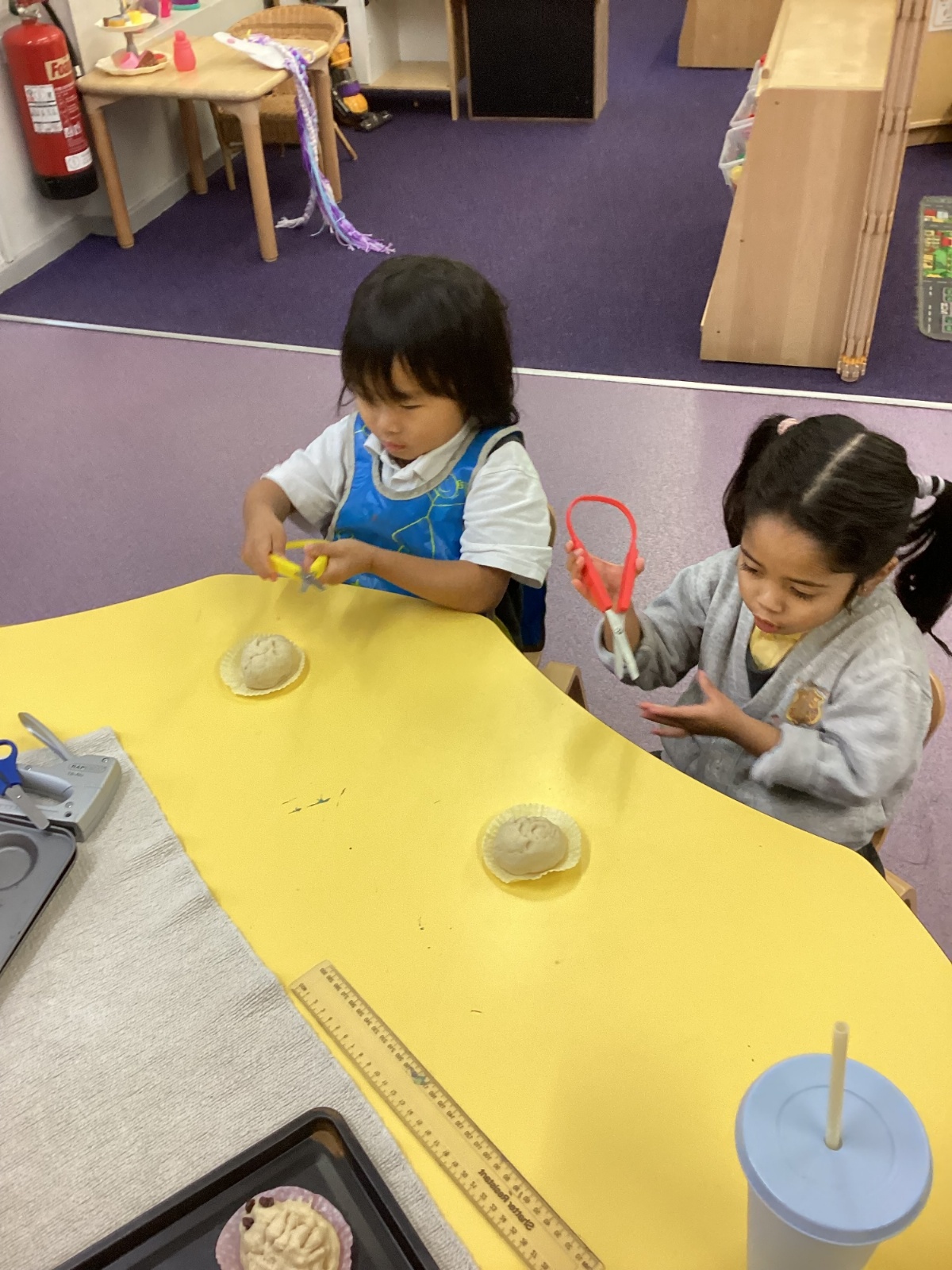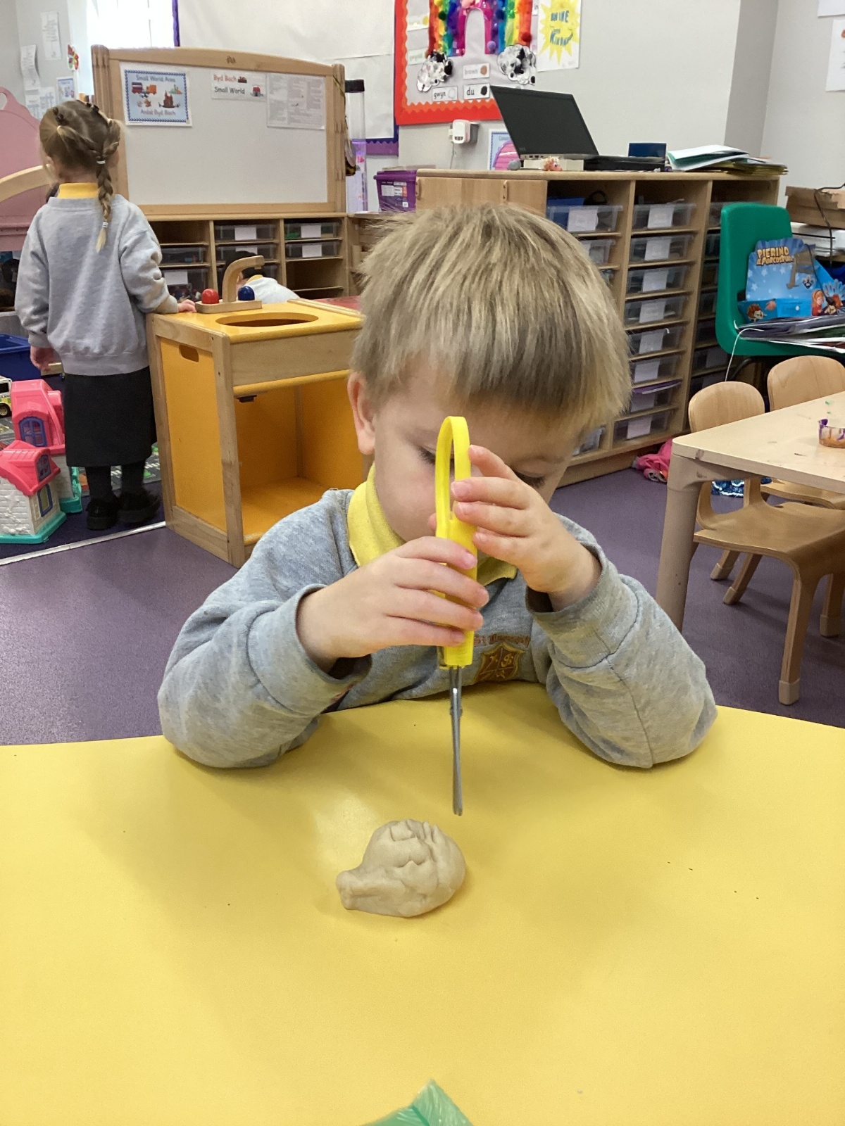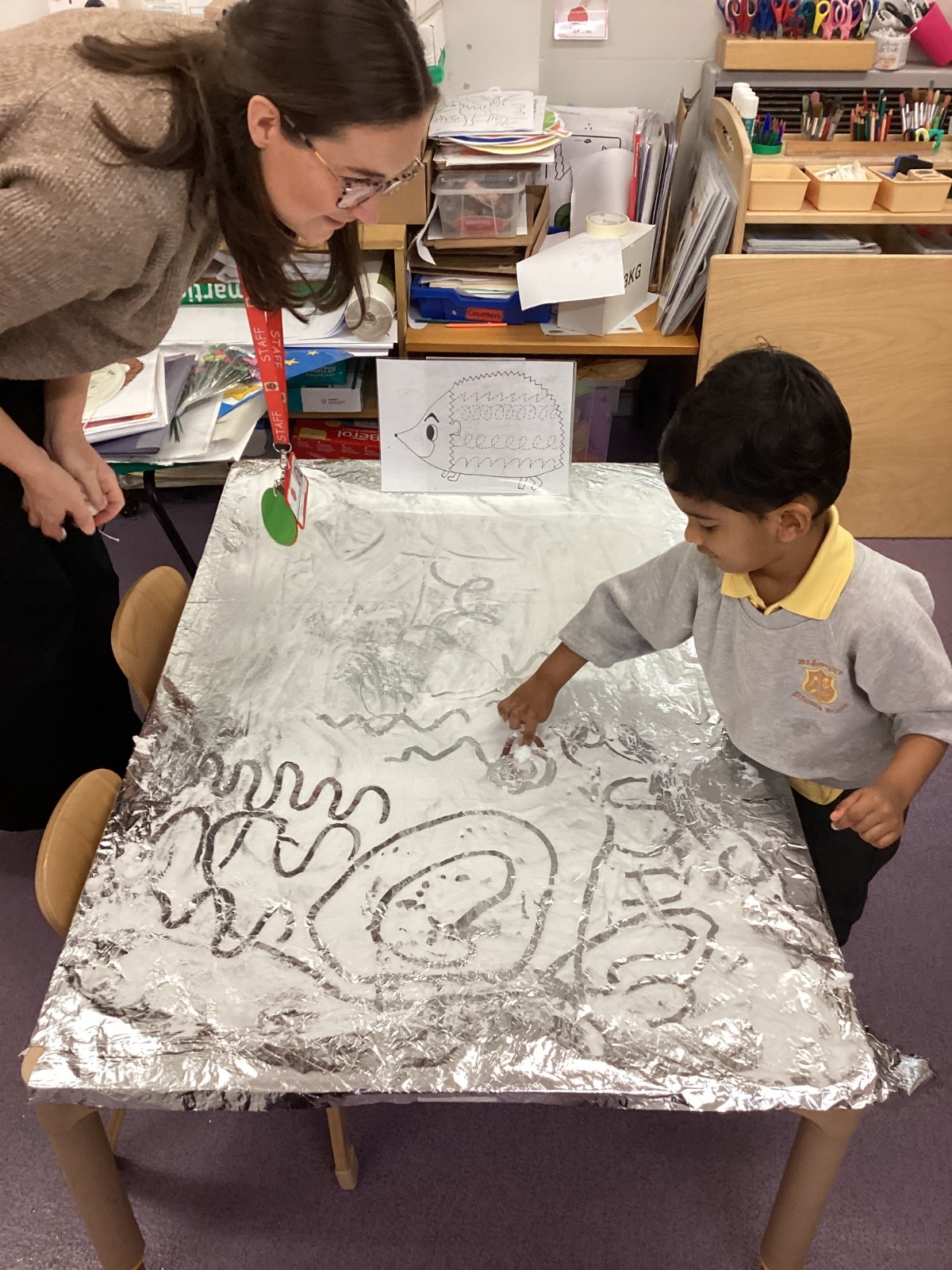 This week, we focused on a storybook about hedgehogs and hibernation, called "The Very Helpful Hedgehog." We discussed where a hedgehog lives, and what he might use for a bed. We used these natural materials to count and start to become familiar with Ten Frames. During our outdoor day, we practised den-building, finding and making cosy homes for our conker hedgehogs. To finish off a great week, we rolled, pinched and fine-tuned our scissor skills to cut bread dough and make hedgehog bread rolls!