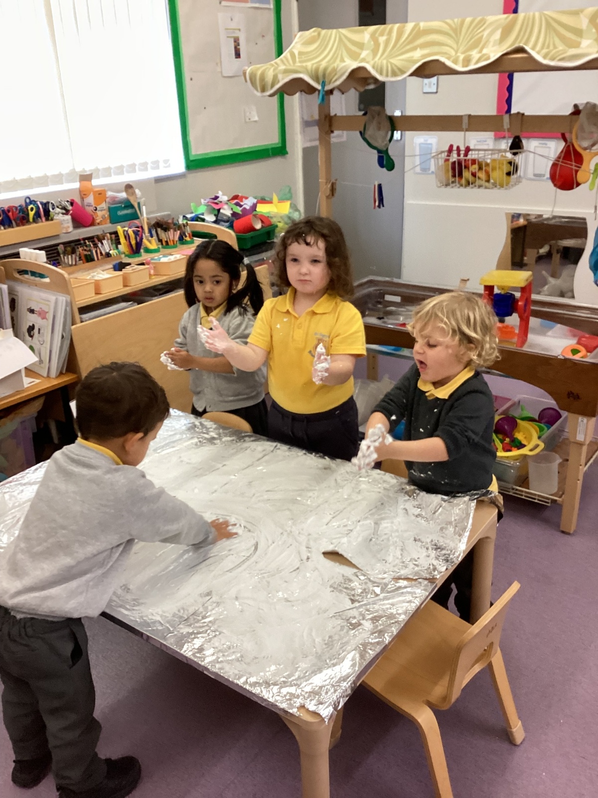 This week in Nursery, we learned about how God made each of us unique. We made art together with a partner or group using our fingertips after learning that each of our fingerprints are different! We also listened to the children's Bible story of Cain and Abel. We have also become more familiar with our daily prayers and are doing such a great job singing along!
