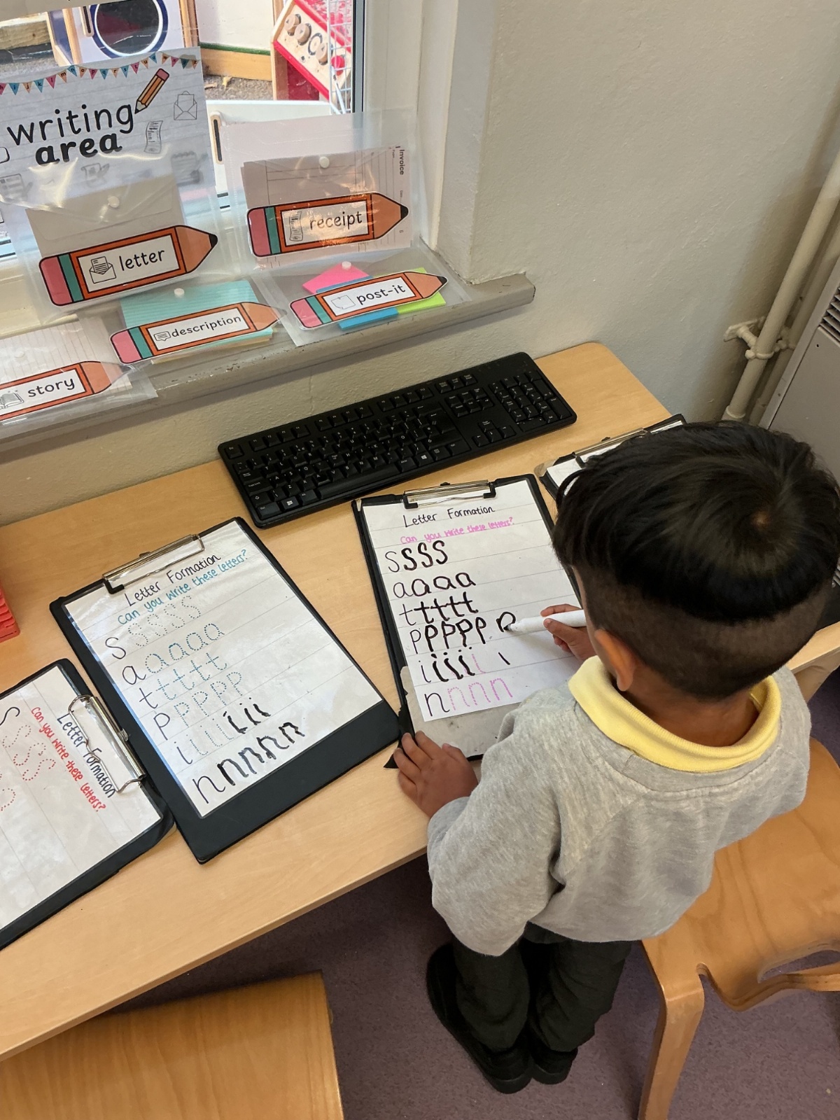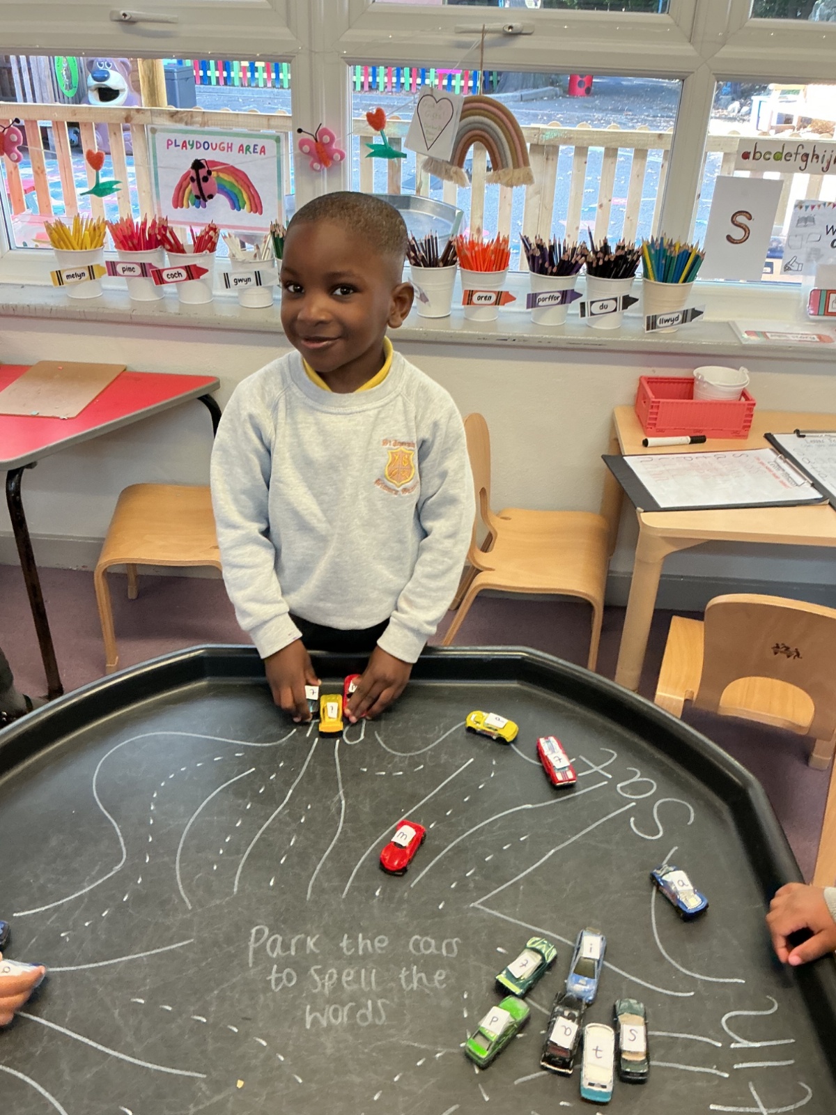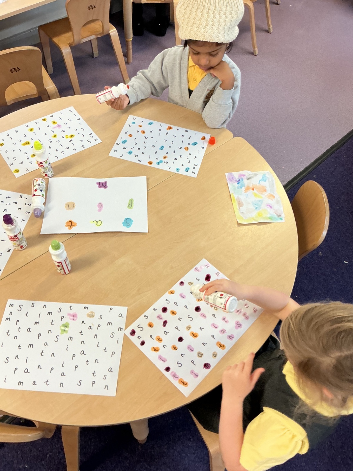 In Phonics, we’ve focused on the sounds m, d, and g. The children have been practising saying, hearing, and writing these sounds through lots of enhanced provision around the classroom.