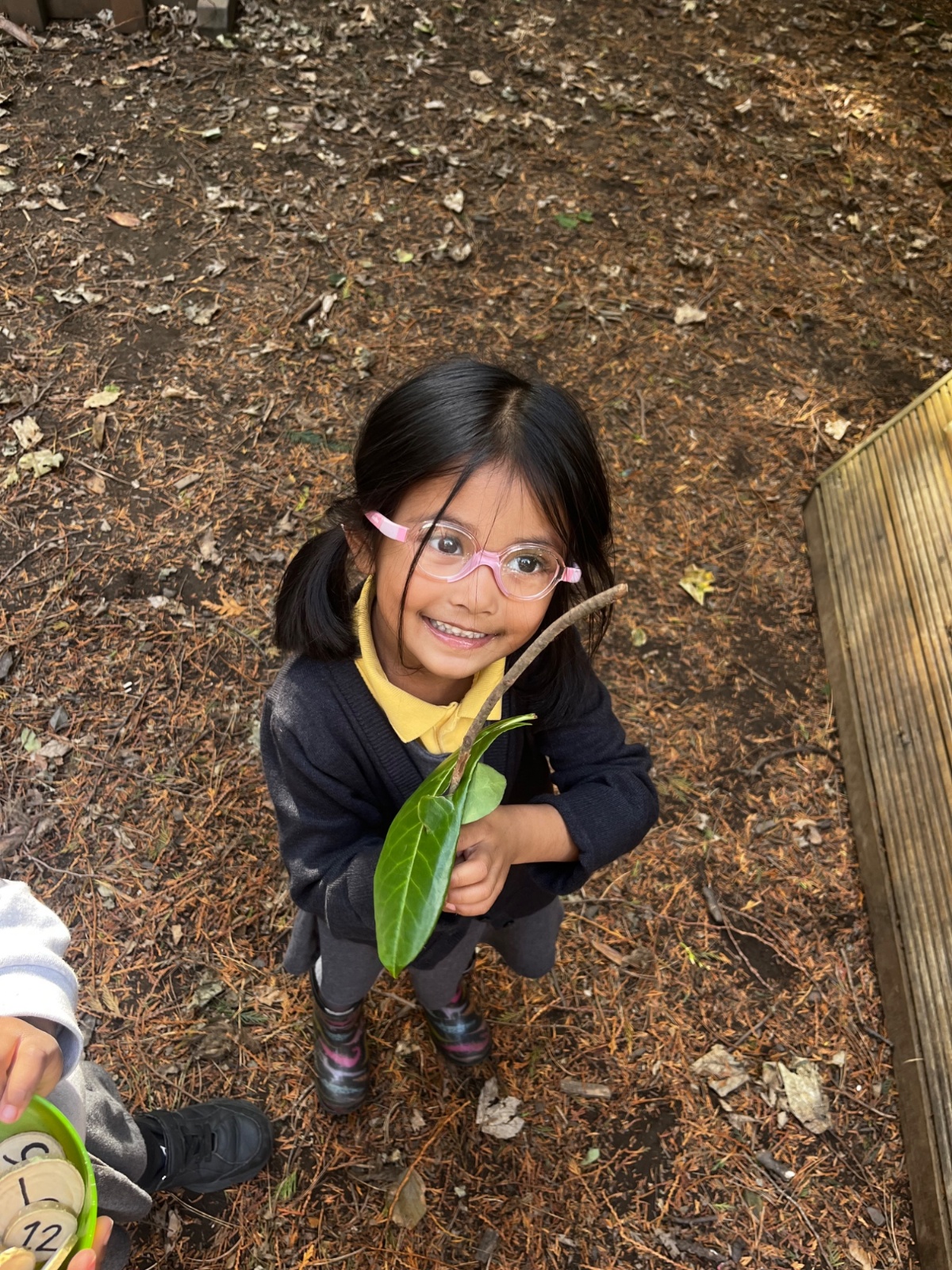 On Miss Wood’s Wood Wednesday, we had a special task. Someone had sneaked into our classroom during lunchtime and scattered our number logs all through the woods! The children turned into detectives, hunting down the missing numbers and helping to put them back in order from 1 to 20. We worked together to spot which numbers were still missing and continued searching until they were all found.