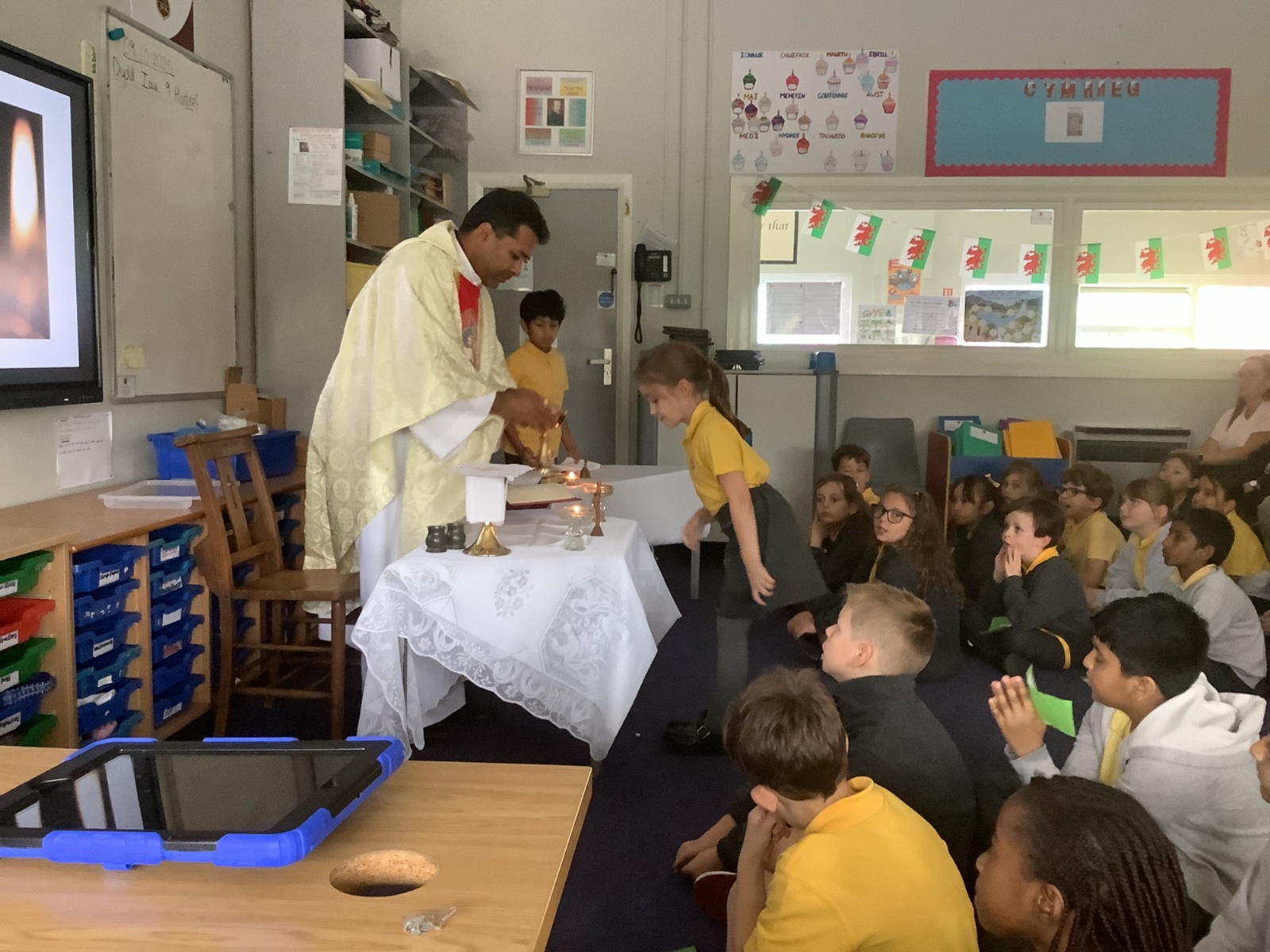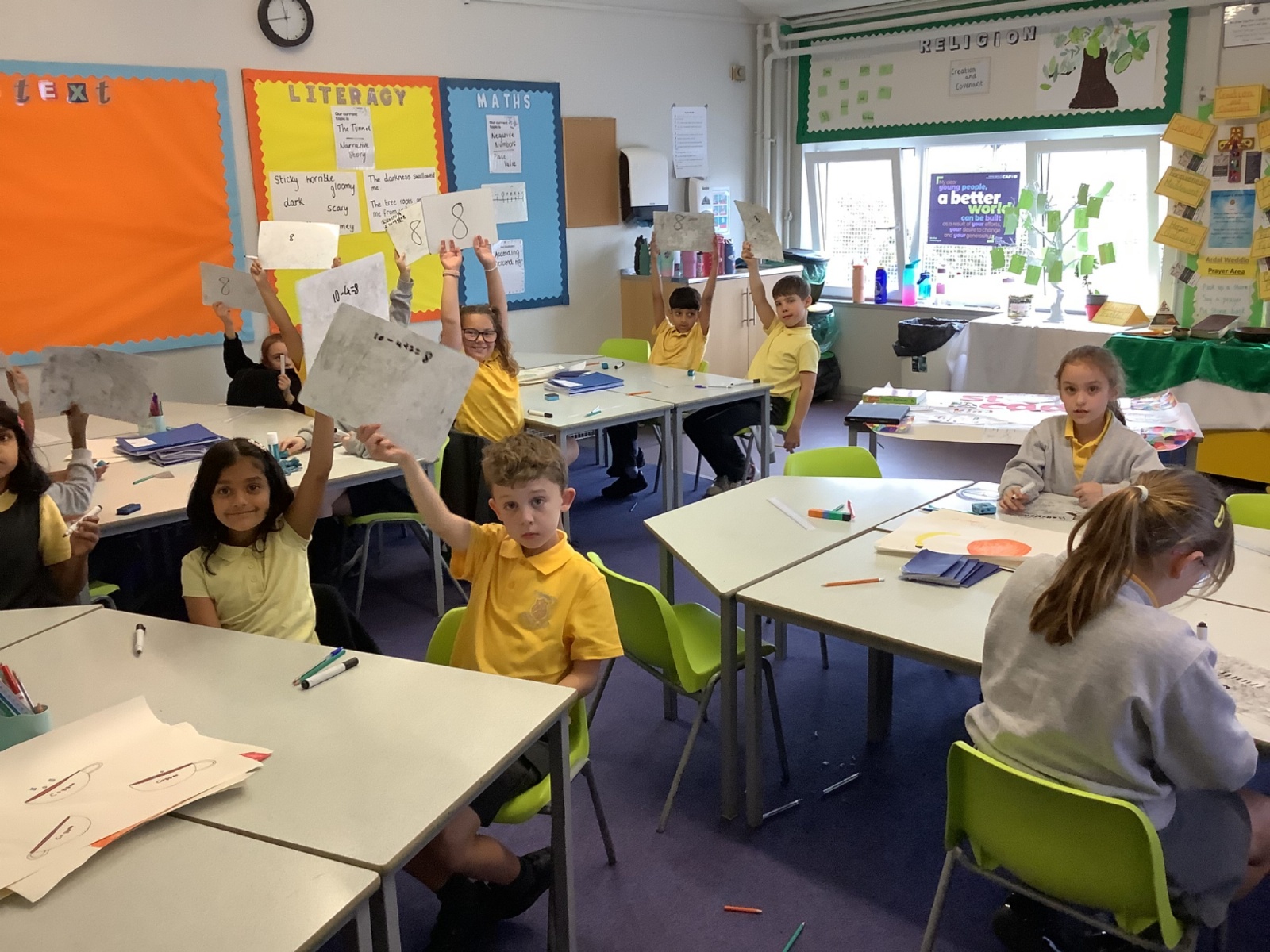 In RE this week we explored the differences and similarities of a covenant in Christianity and Judaism. Completed our display of our Class Saint St Cadoc which was completely created using art made by the children. Finally, we have been reviewing some key questions from our topic which we will finish reviewing next week. In maths, we challenged ourselves with solving problems mentally but also noting down multistep procedures. In literacy and context, this week we have been looking at the story Shahzaib the Superhero by Haf Llewelyn. Our work with this story will continue to the end of half-term. In Welsh, we have been practising a conversation discussing how someone is but also reporting back in the third person. Ready to write next week!