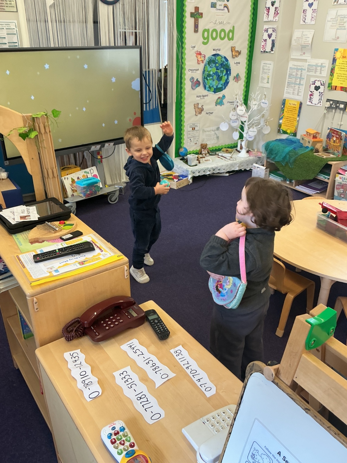 This week in Nursery, we focused on prayer. We learned about how we are speaking to God when we pray, and learning to pray in our own ways. We practised making our own prayers again in our lovely outdoor area, remembering to thank God for all things big and small. We also read a lovely story about a monkey that can do BIG things even though he is little, just like us!