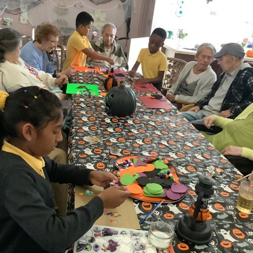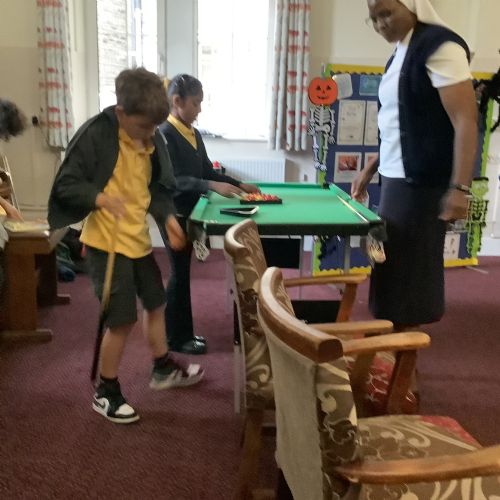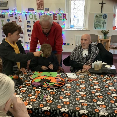 Some of the Mini Vinnies paid a visit to the residents of Nazareth house to take part in a spooky arts and crafts session