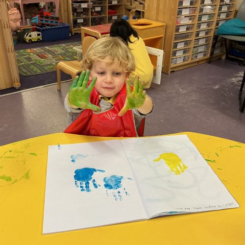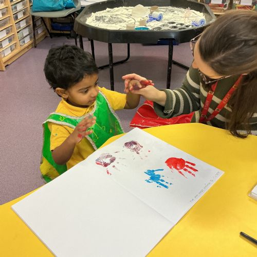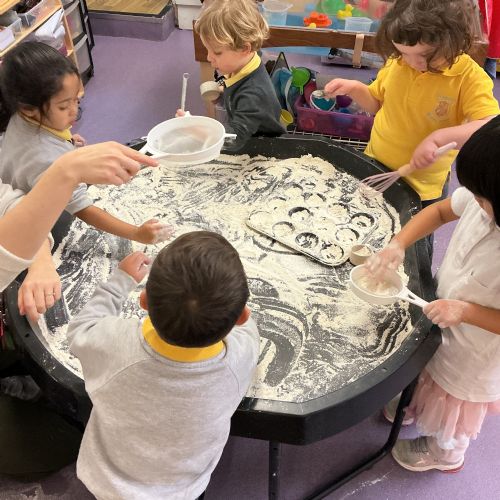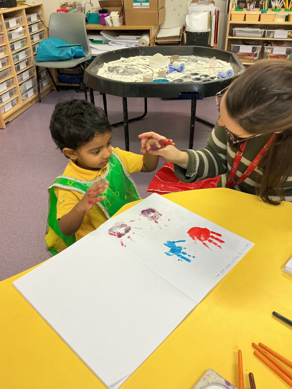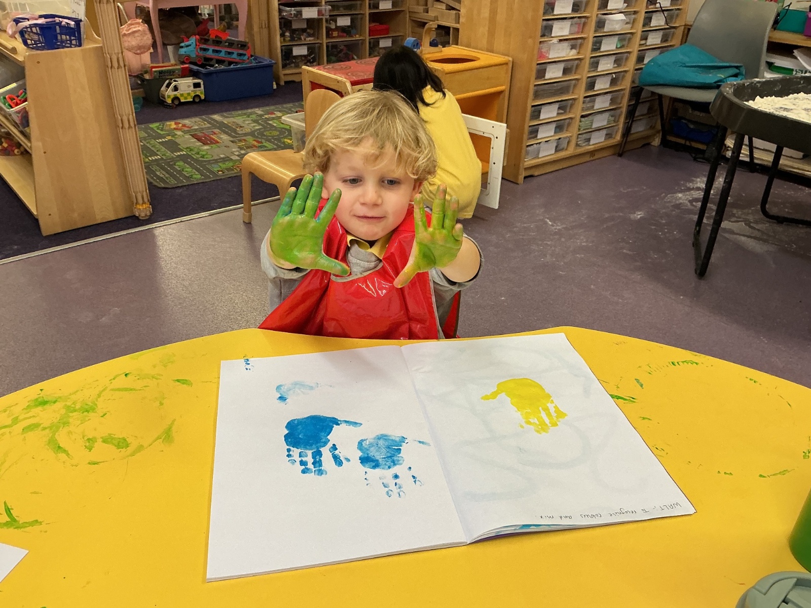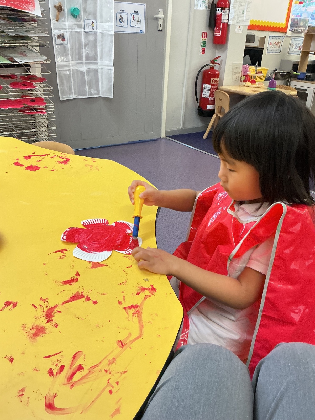 As we had Advent and Remembrance Day to learn about this week, we did not have a specific storybook focus. Instead, we read and watched multiple stories about both. We made poppies, drew Advent wreaths in our books, made some to take home and worked together to experiment with colour mixing! We also got messy by mixing, measuring, pouring and sifting flour in our baking Tuff Tray.
