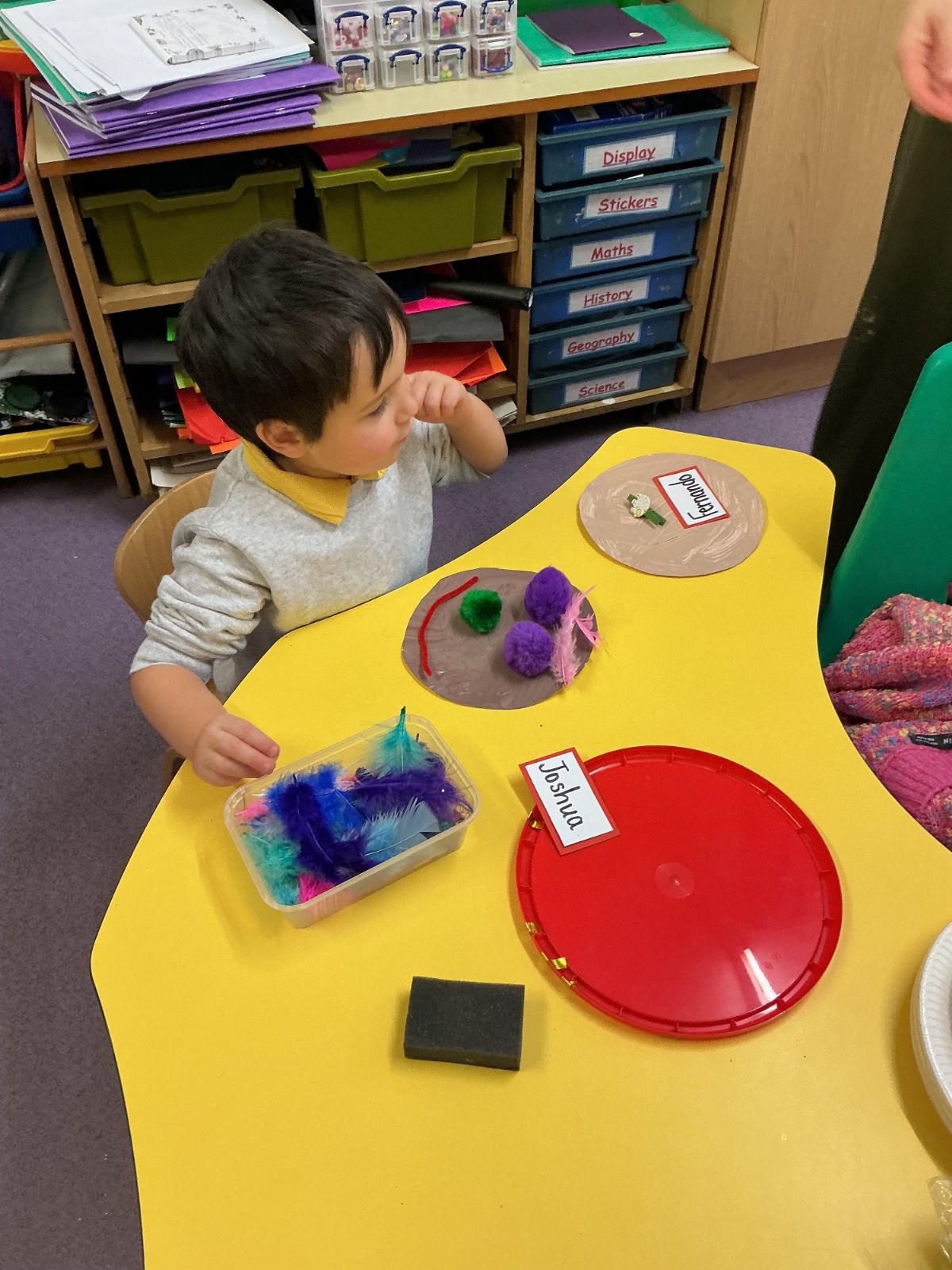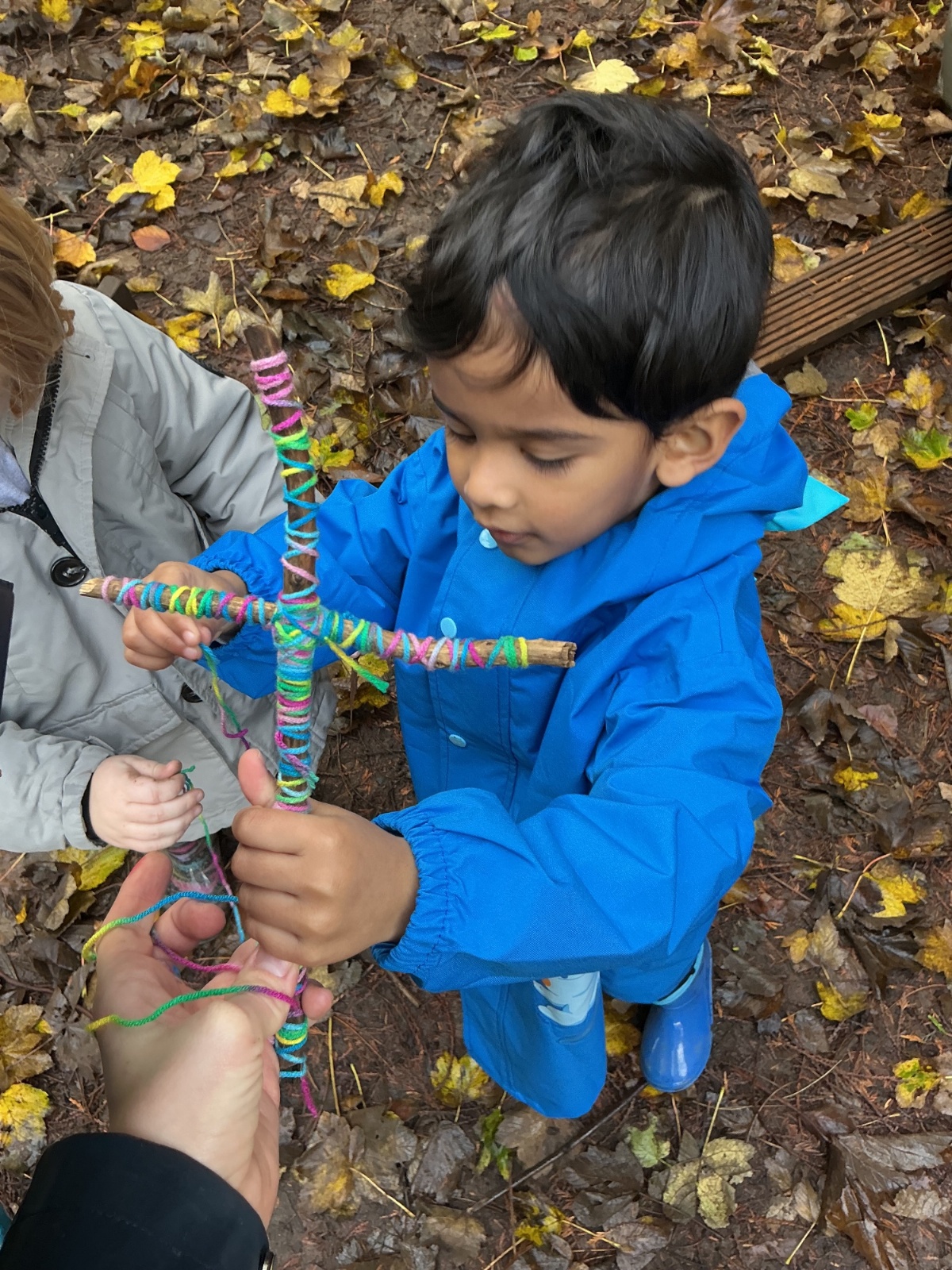 This week we celebrated Remembrance day, and so we have celebrated and prayed to God to look after those who have passed. We have also begun discussing Advent, and made our Advent wreaths this week. On our outdoor day, we found some sticks and took part in an interactive prayer, each of us wrapping a piece of yarn around our cross while we prayed for someone special.