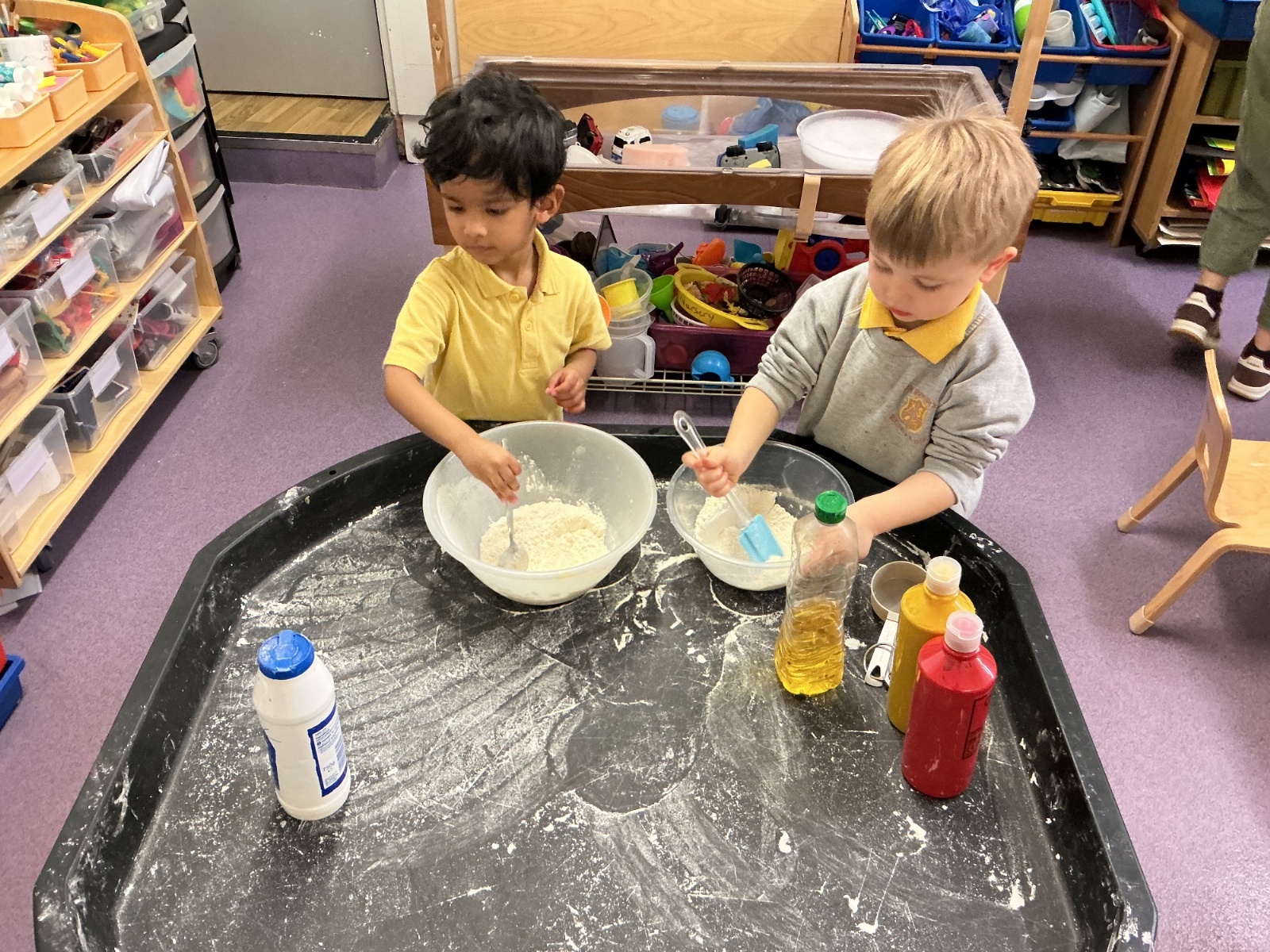 Our maths this week took a more practical route, as we weighed and measured to make our own playdough for next week. Don't worry though- we did have lots of maths activities around the classroom so we could still practise!