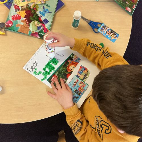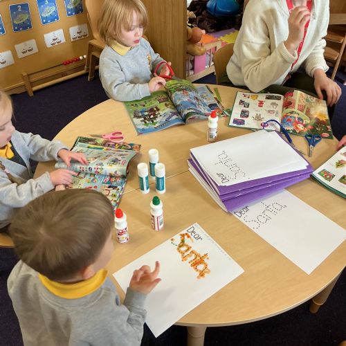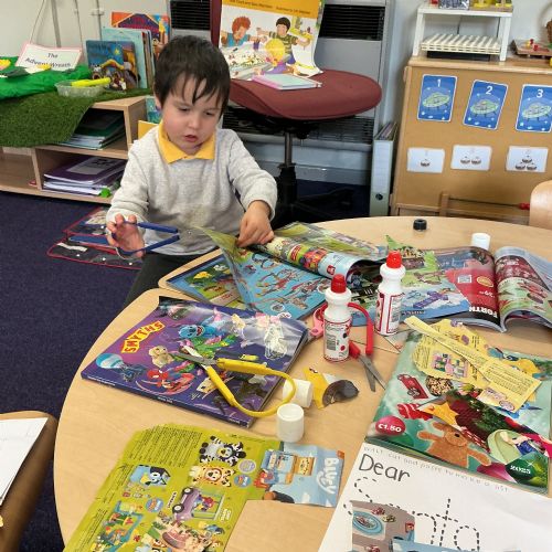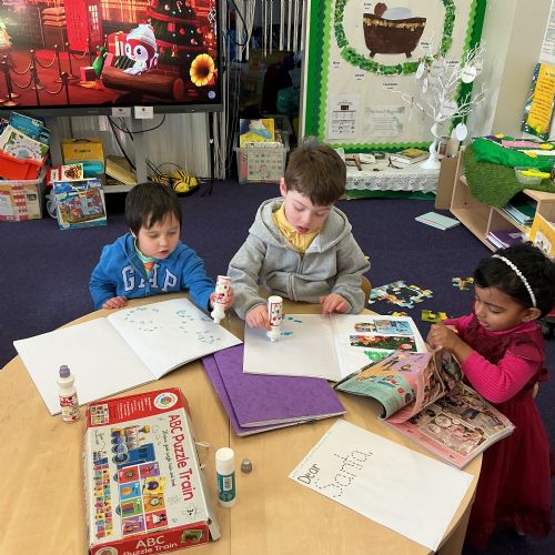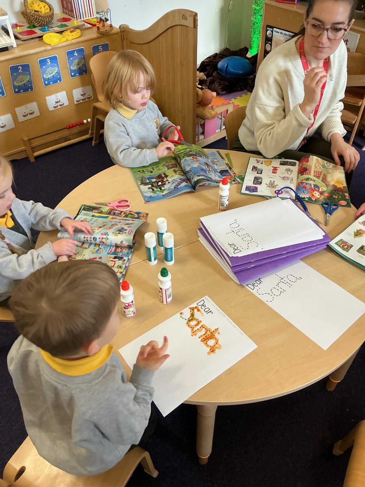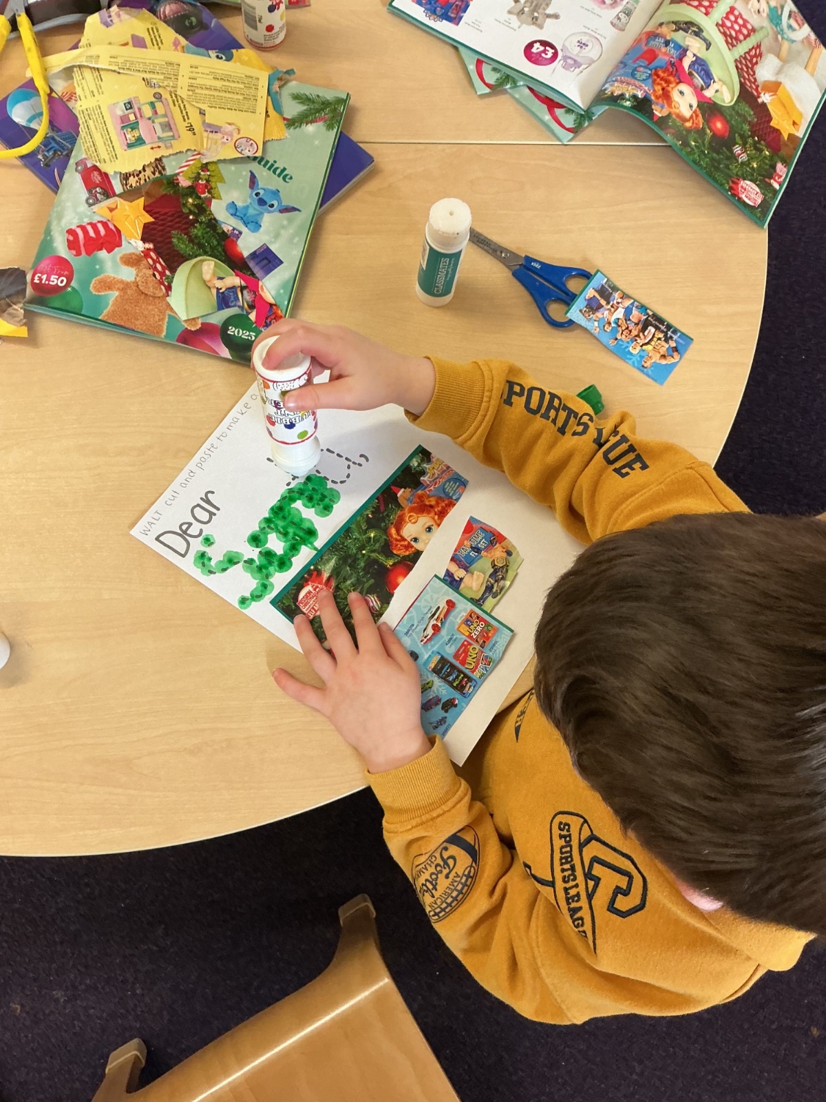 Finally, we ended the week off by creating our very own letters to Santa. We practised writing the word "S-A-N-T-A" and looked through magazines to find toys and gifts we might like. We practised our cutting and pasting skills to make our letters, and Miss Horner took pictures before sending them to Santa, if any mummies and daddies are curious!
