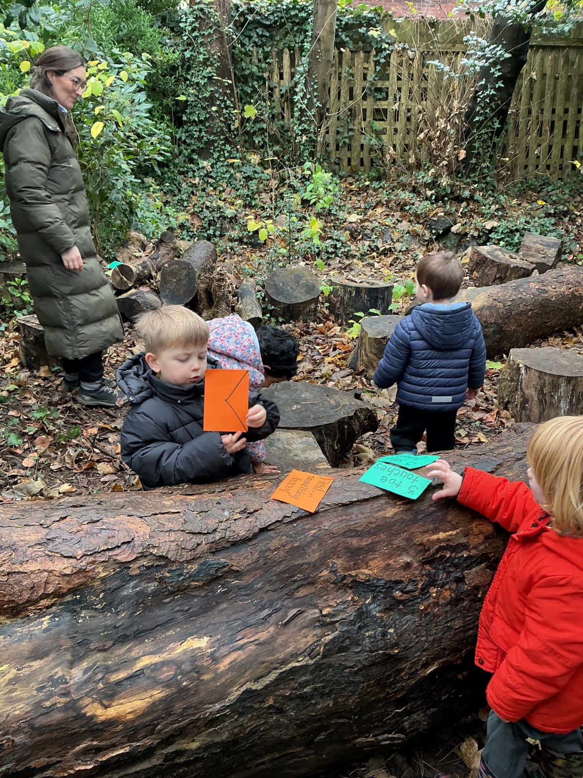 During our outdoor day, we had to search through the woods to find all of the Jolly Postman's missing letters, which gave us secret instructions!