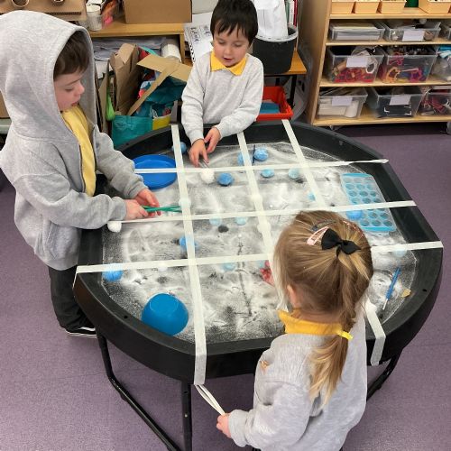 In maths, we practised our counting as always, and also practised writing the number "3."
