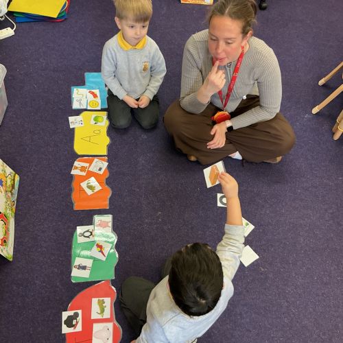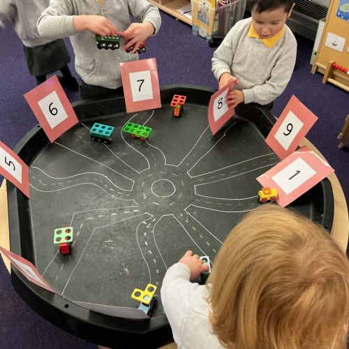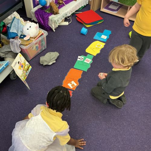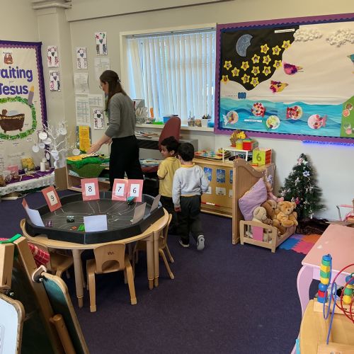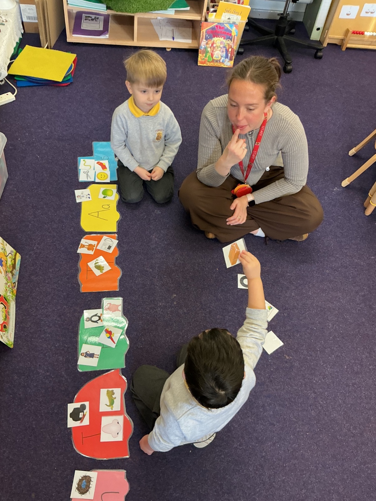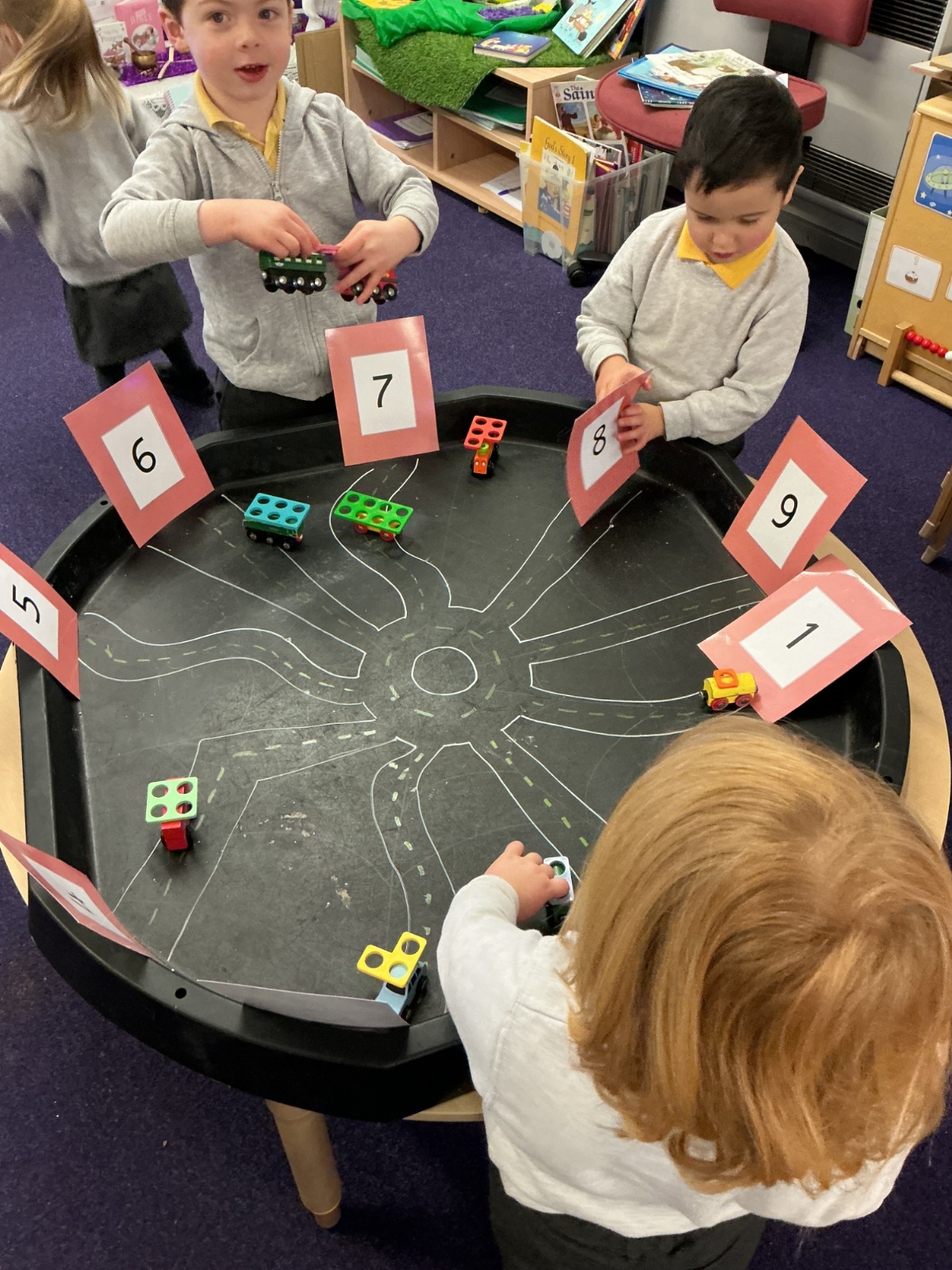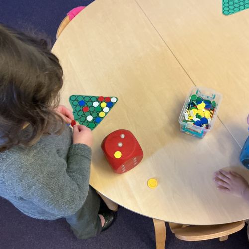 To support our literacy, we enjoyed a matching activity where we needed to find the correct sound carriage on the train to carry the object (an astronaut in the "a" carriage). In maths, we played a great game that got us up on our feet! We were rolling giant dice, counting our score and putting that many baubles on our Christmas trees: the first to fill their tree was the winner!