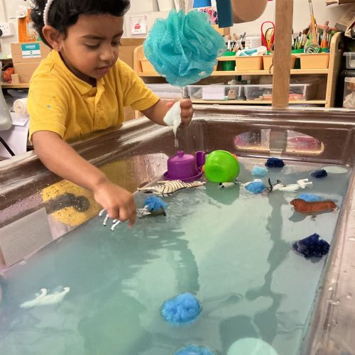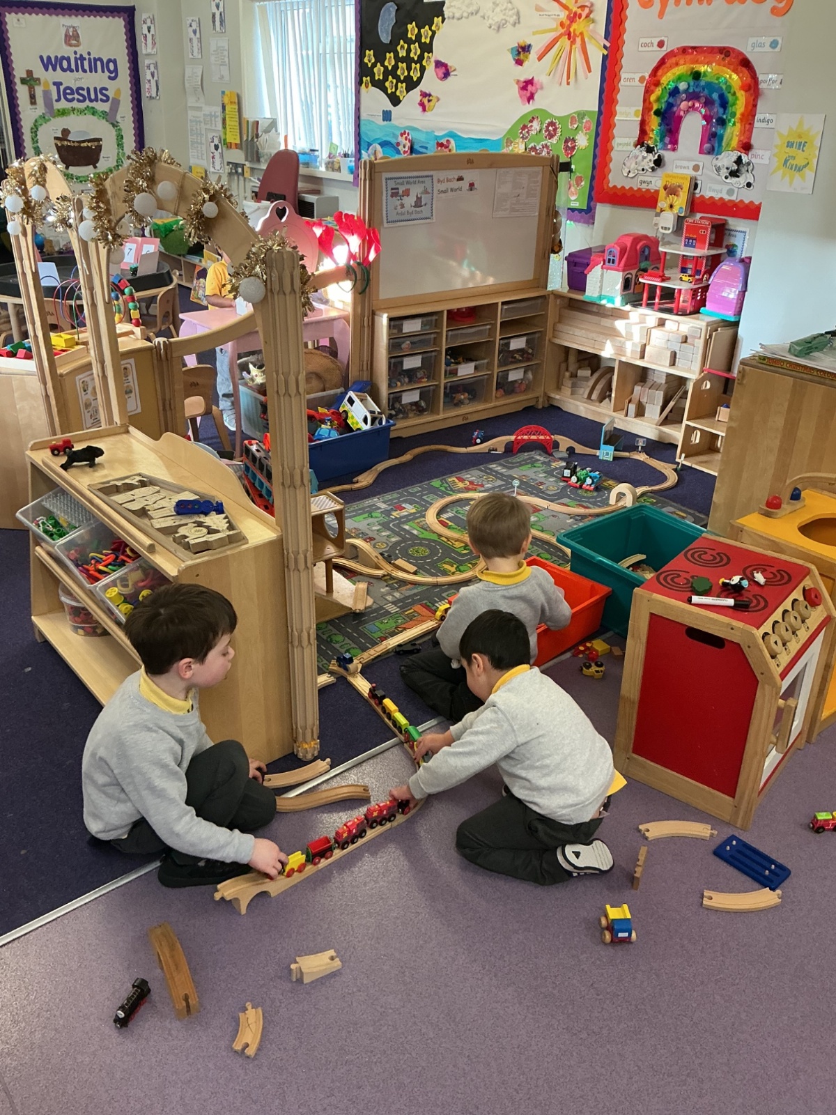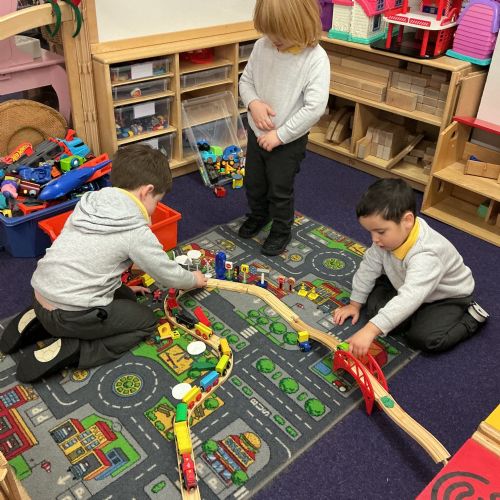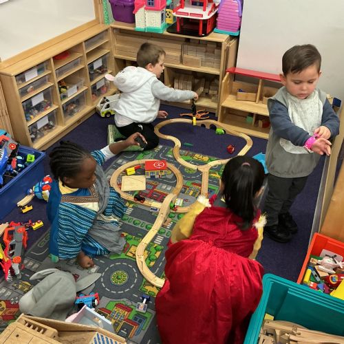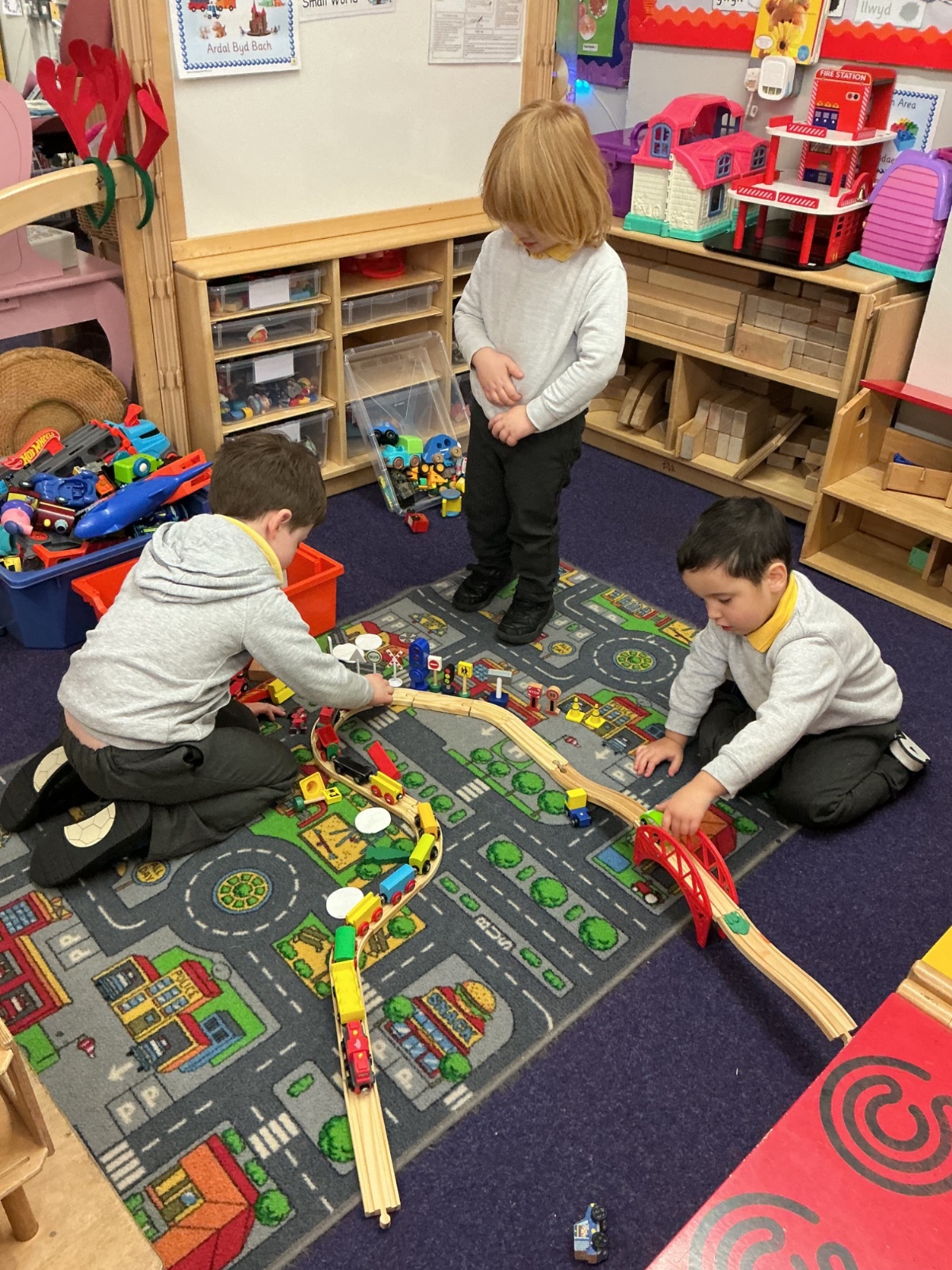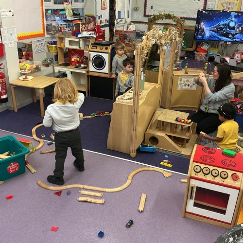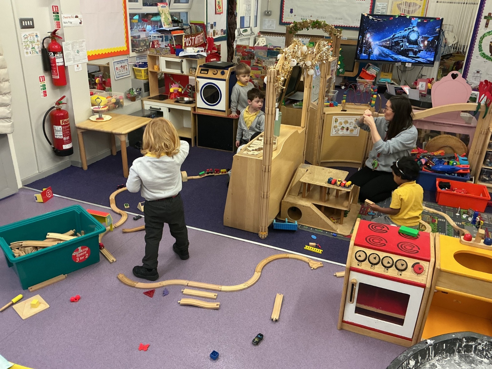 This week's storybook theme was "The Polar Express." We discovered our universal love for train sets, building winding train tracks and villages with our friends. We loved making tunnels and building tracks that circled the whole classroom together. We practised our numeracy in our maths Tuff Tray, driving Numicon trains into their correct numbered garage. We also strengthened our fine motor skills, drawing different lines in salt with a paintbrush. We also played games of train tag and "follow the leader."