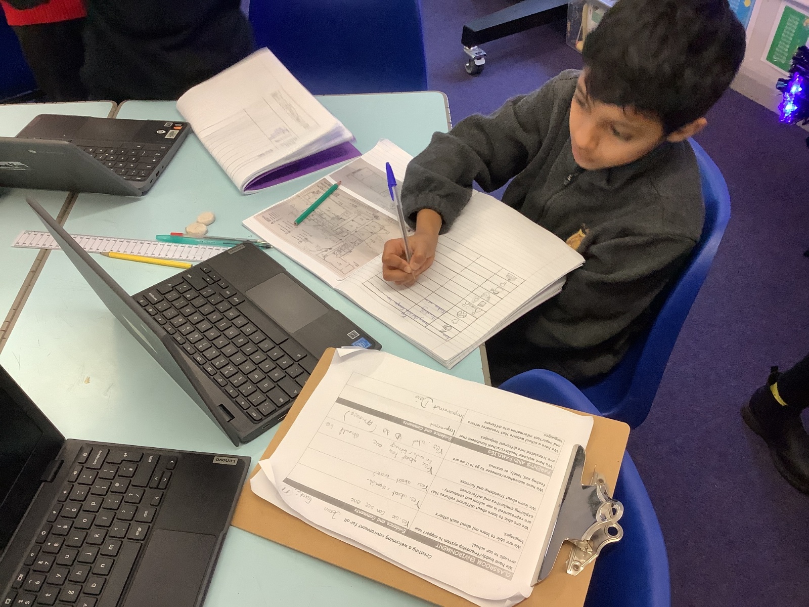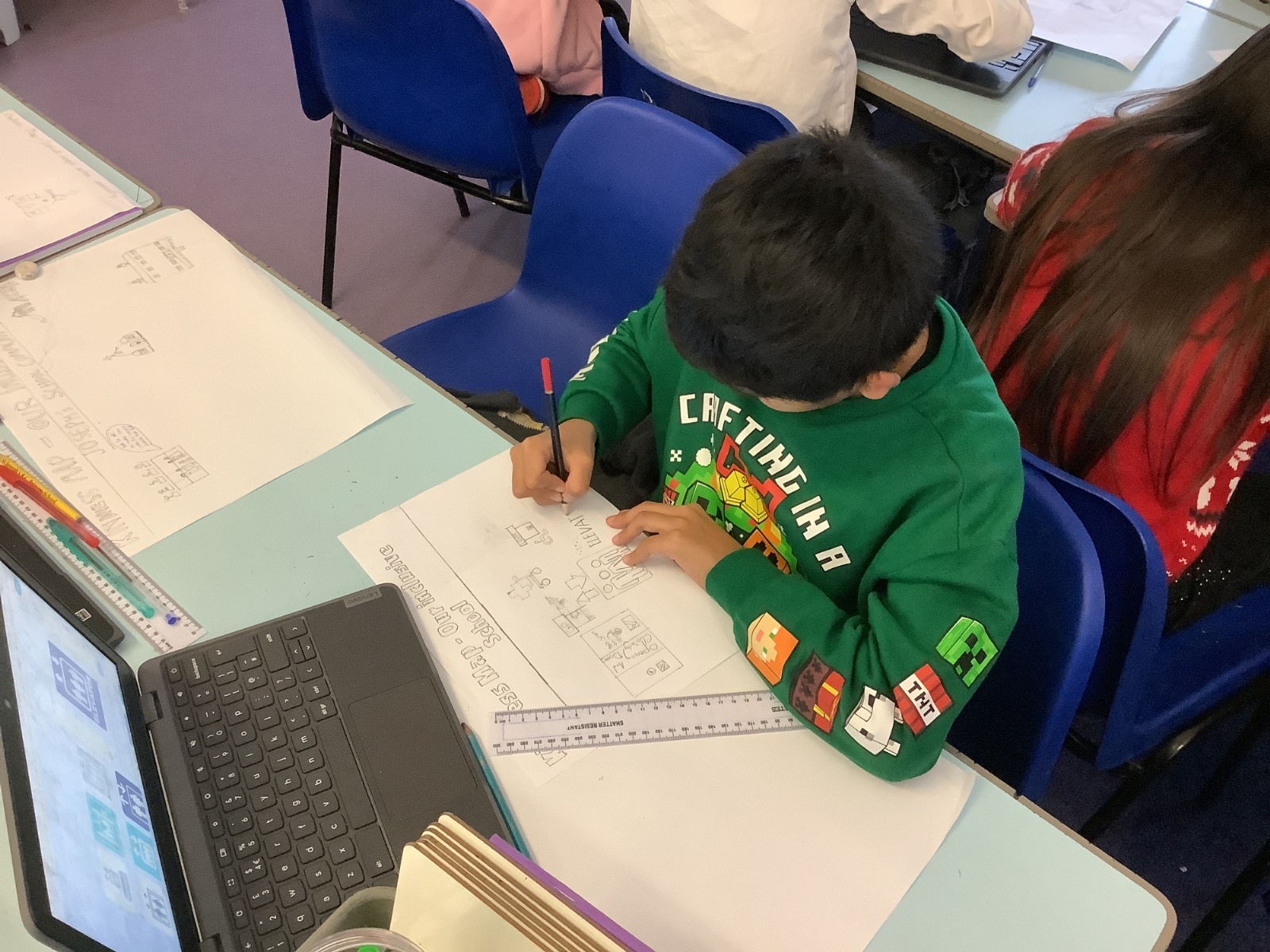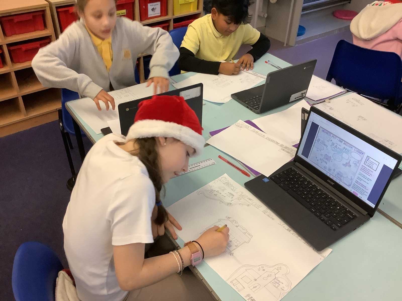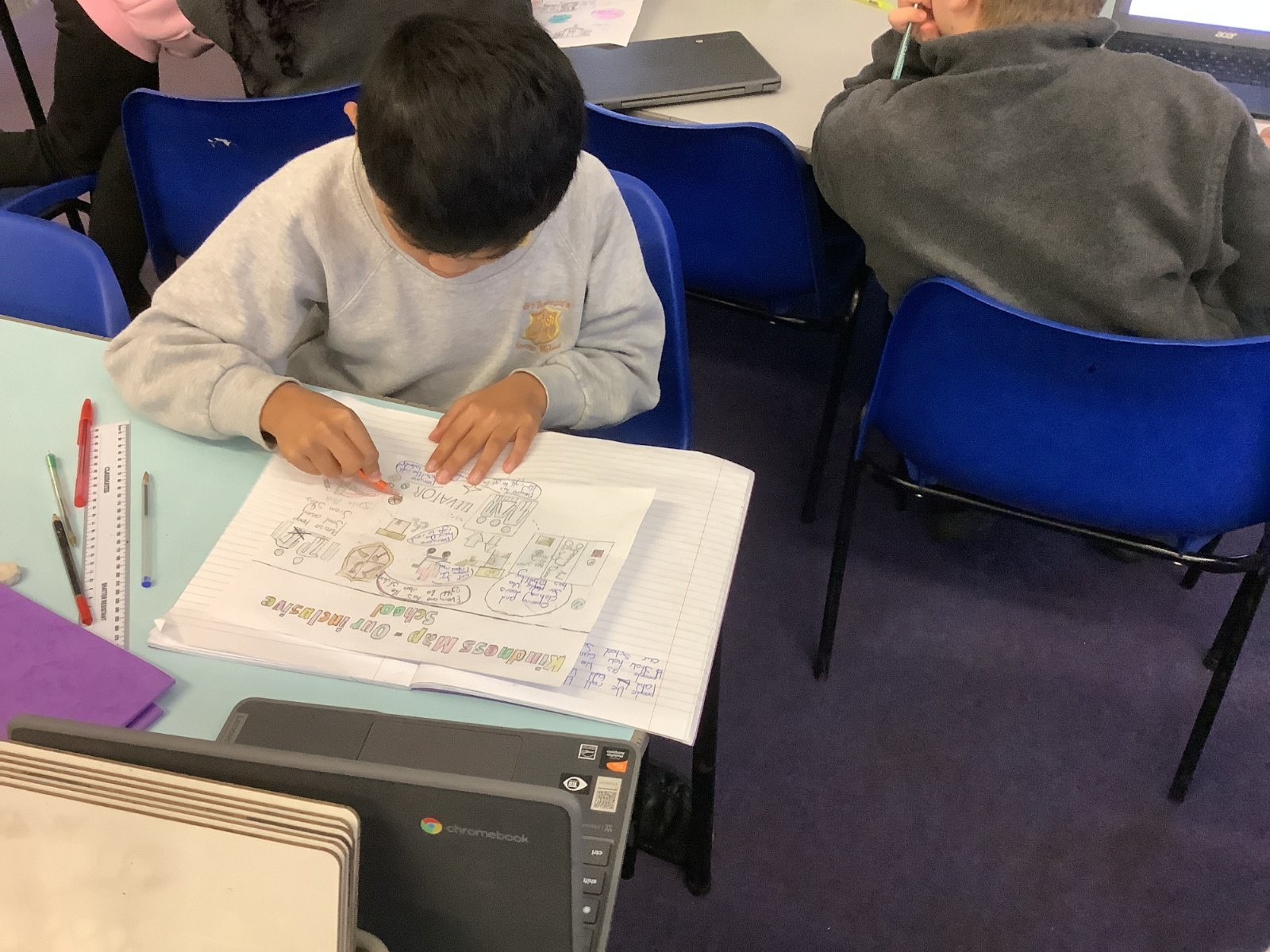 As part of our learning about diversity, equality, and inclusion, we took part in the “Design for All – Inclusive St Joseph’s” project. Using the School Sanctuary Survey, we explored how our school celebrates different cultures, languages, and faiths, and how we make everyone feel welcome and valued. We noticed the many ways St Joseph’s promotes inclusion — from our multilingual welcome signs and diverse displays to our quiet reflection areas in each classroom and near Ms Wheeler’s office. We then used their findings to design improved school layouts, suggesting ideas such as clearer ramp signs and lift access to make our building even more accessible. The project helped us learners understand that inclusion means everyone — whatever their culture, religion, or ability — can belong, feel safe, and take part fully in school life.
