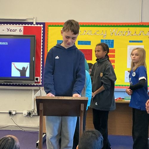 Year 6 Class Mass with the theme of 'Growing in Hope'.