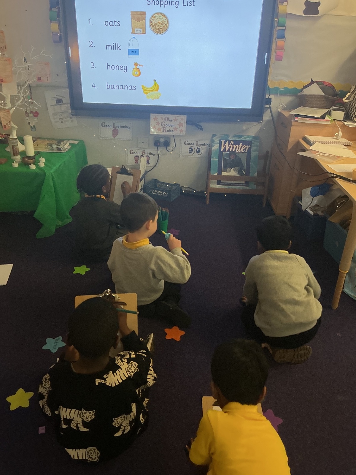 This week in Religion we went on a hunt around the school and playground following the stars. We pretended to be the Wise Men following the Bethlehem star to find Jesus. On our hunt, we found the three presents of Gold, Frankincense and Myrrh along the way.