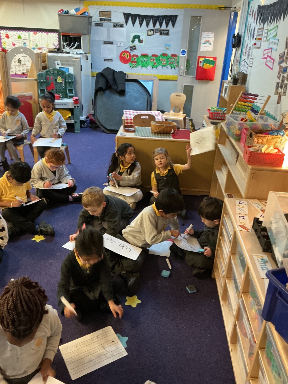 Our digital skill of the week was using Beebots and taking pictures of our work for Seesaw. Miss Wood modelled how to do these skills on the iPad and worked with small groups to practice. Children could practice these skills using the iPads during provision.