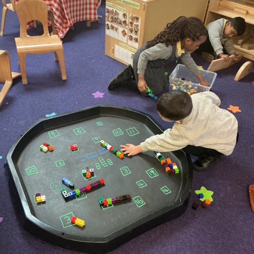During maths provision, children cut out numbers 1 to 20 and stuck them in the correct order. They also paired the bowls of porridge, beds and chairs to the correct characters in the story of Goldilocks and the three bears.
