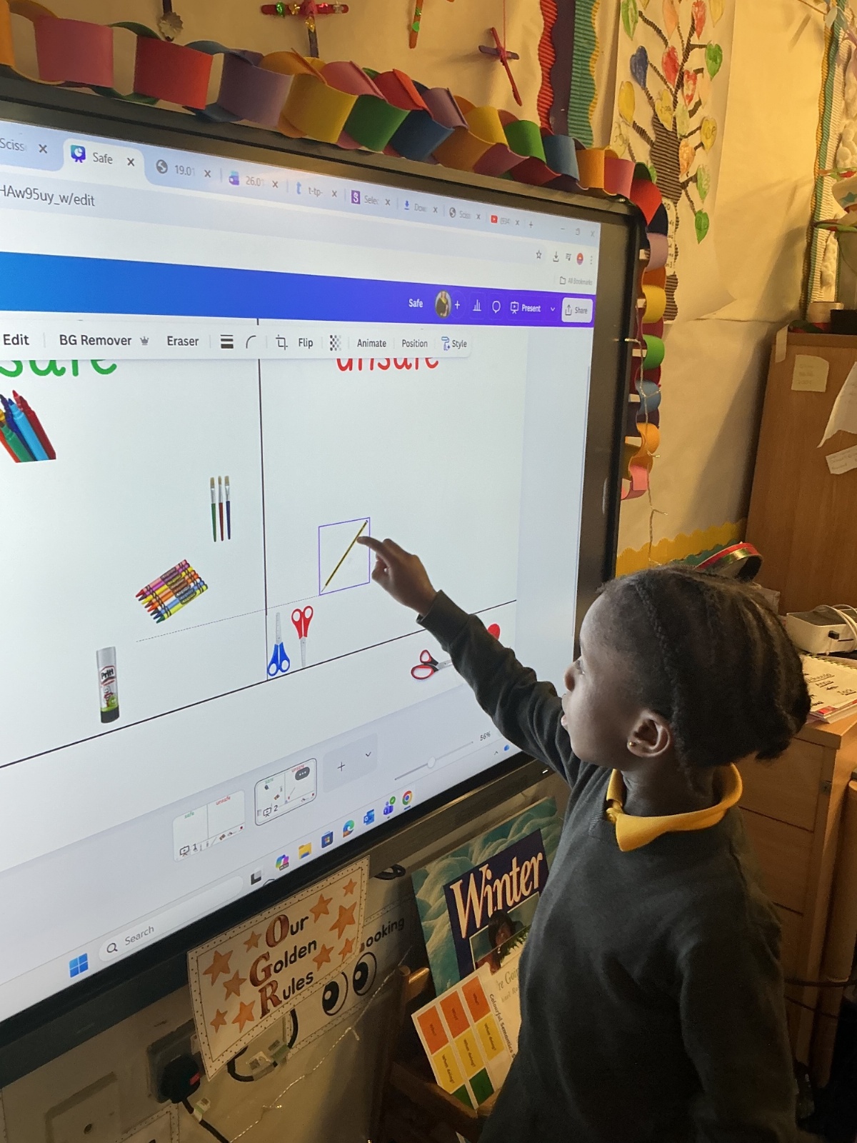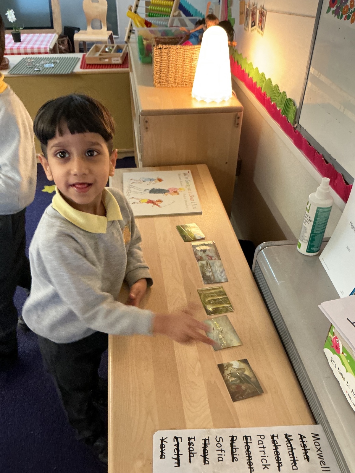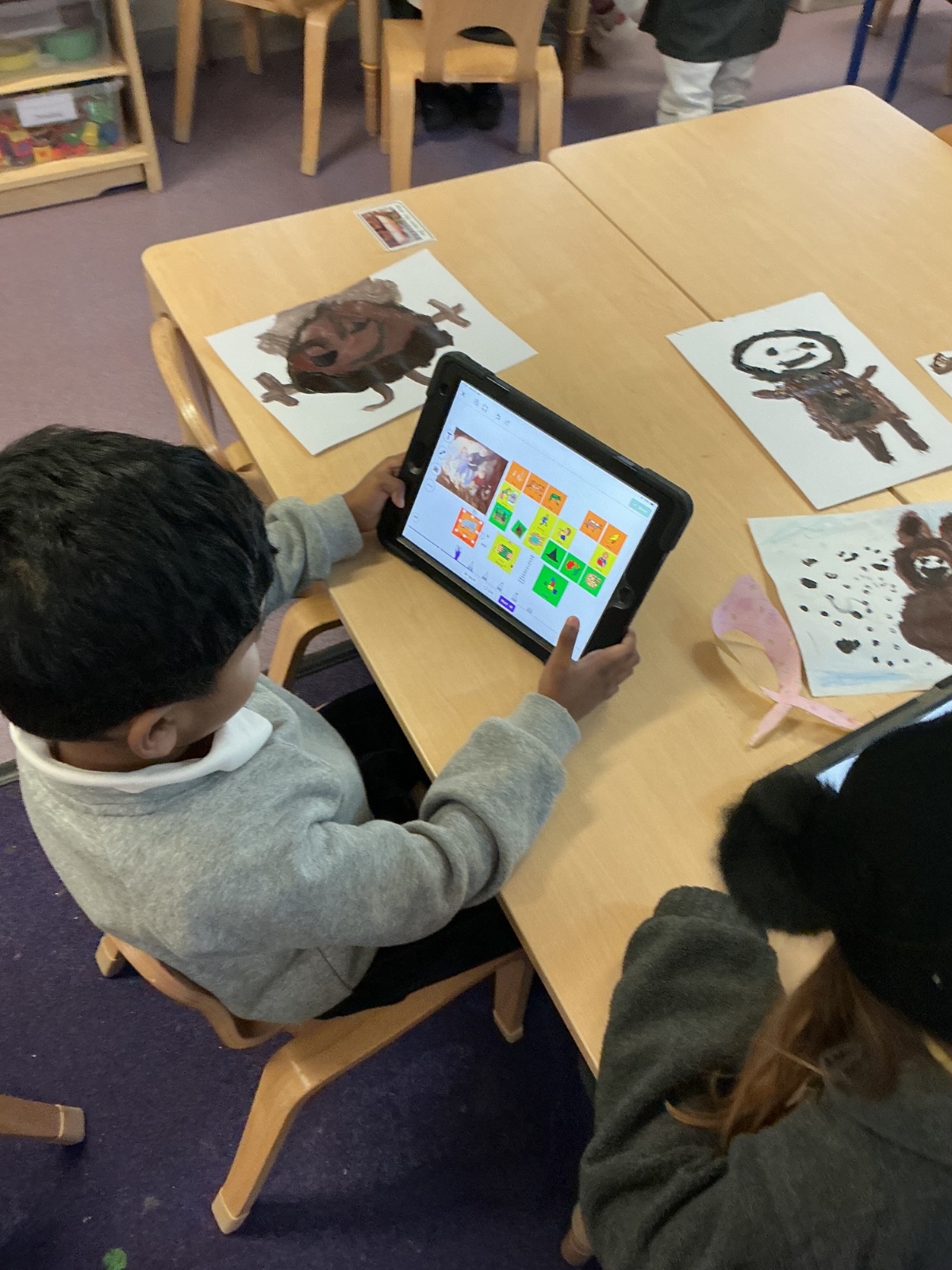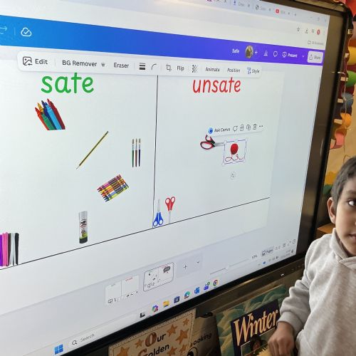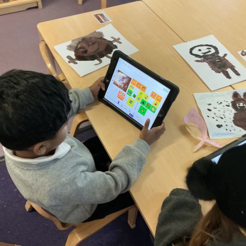In Literacy, we have been reading We’re Going on a Bear Hunt as our story of the week. We went on a bear hunt in the school outdoor environment, created our own pictures of bears, and sequenced the story using Seesaw on the iPads. We also created some bear hunt–related sentences using Colourful Semantics.