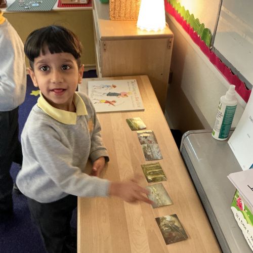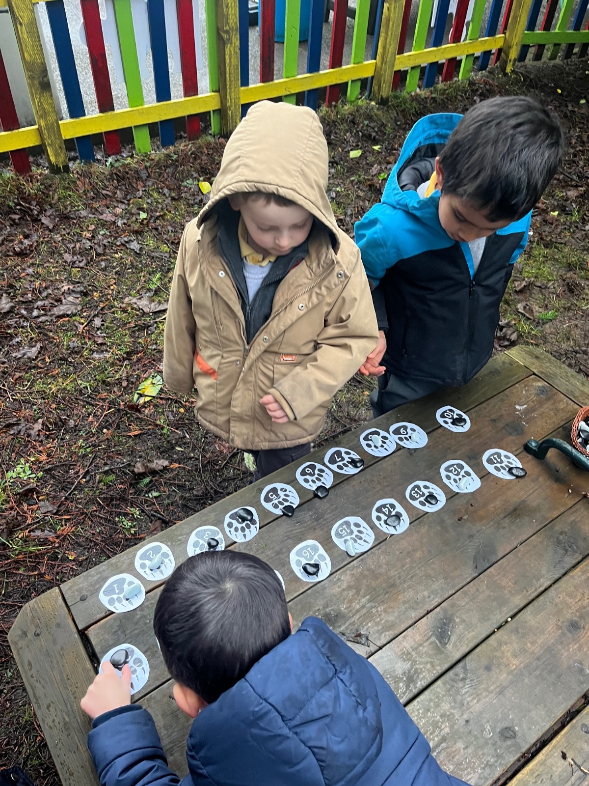 On Miss Wood’s Wednesday, we continued thinking about our story of the week by following the bear’s footprints. Each one was numbered, and we put them in order from 1–20.