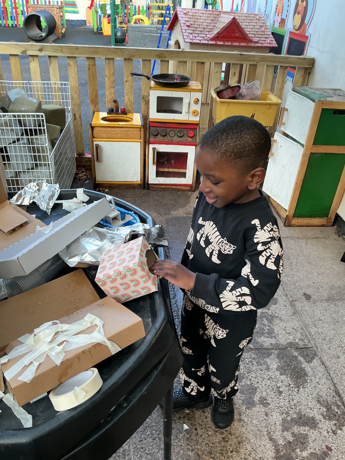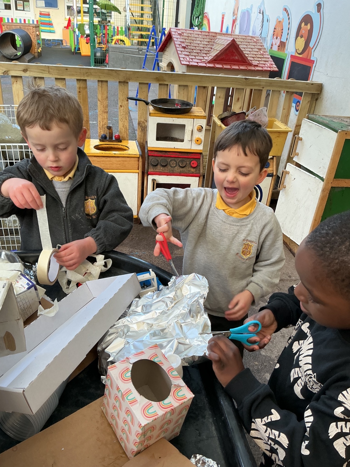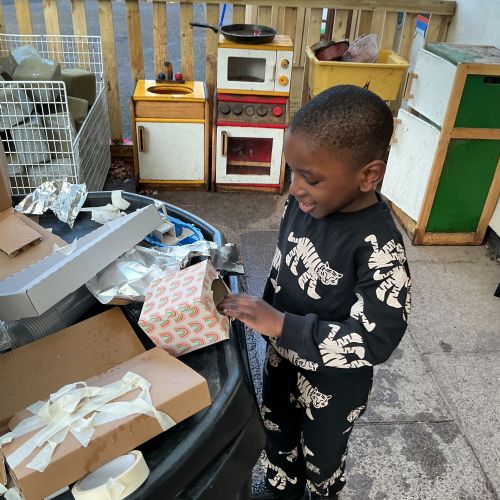 In Context, the children have been creating boats in provision using junk modelling and the correct tools for the job. We tested our boats in the water tray to see whether they would float or sink.