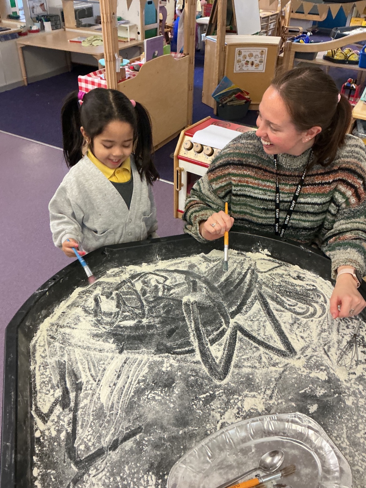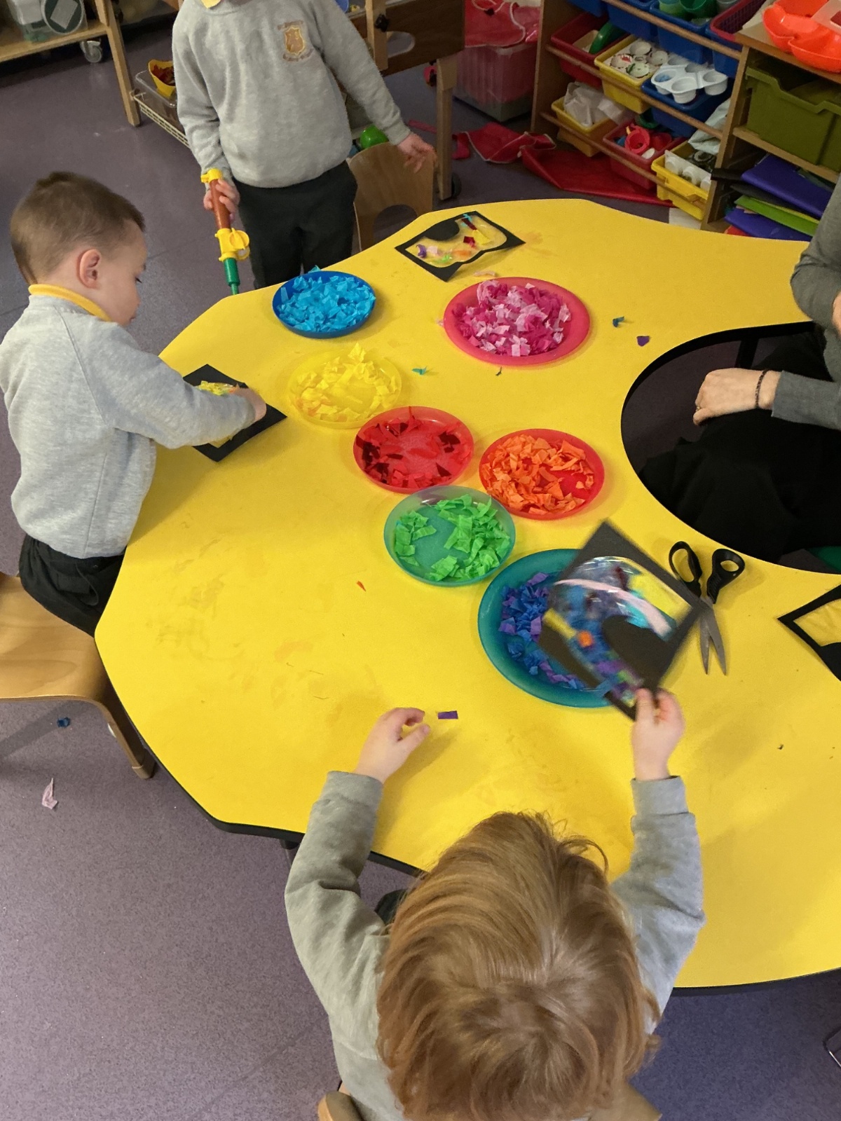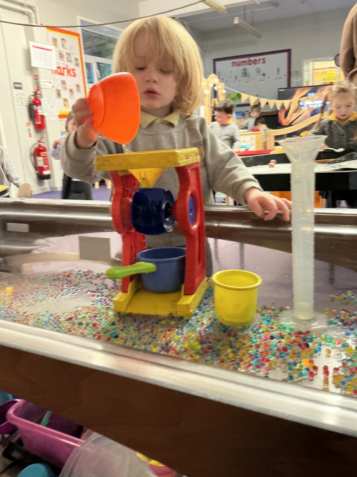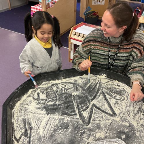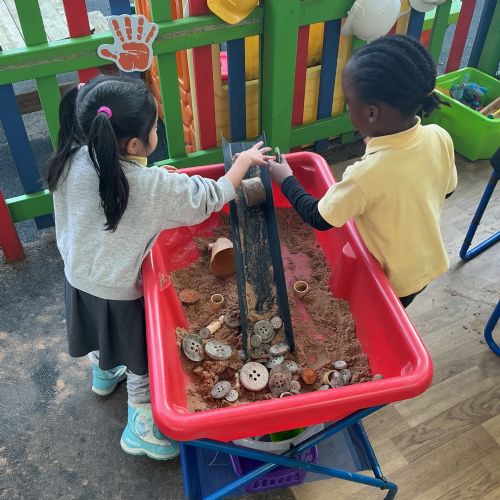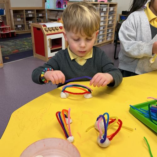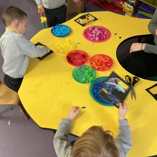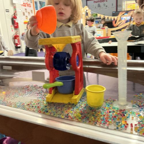 Miss Horner listened to our interests from last week, so our theme this week was all about light and colour! All week we were experimenting with flashlights; making spotlights, shadows and shining our light through different plastics to mix and make colours. The biggest surprise this week was ORBEEZ! We LOVED having these in our water tray, they were so colourful and jelly-like. There were even fairy lights underneath to light up the different colours. We practised colour matching, and made lovely colourful rainbow sun catchers to brighten up our windows at home.