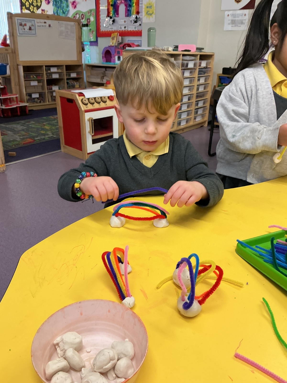 This week, we learned more about what Jesus did during his life, and introduced the story of Jesus Feeding the 5000. We listened to the story, had a little discussion, and made some pipe cleaner and bead fish to use in provision over the next couple of weeks!