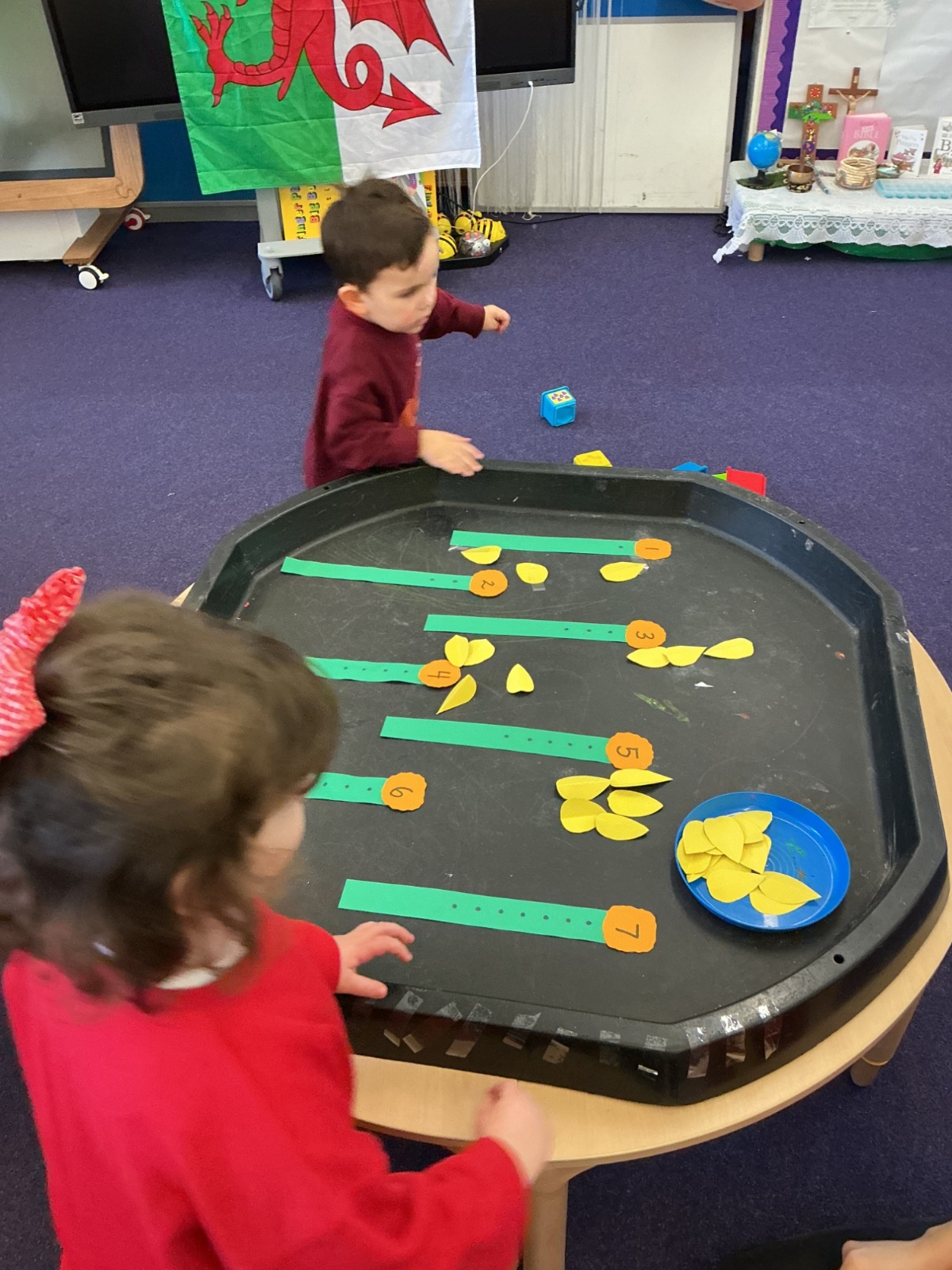 In our maths learning, we practised counting up to 5, matching numbers to their values and exploring numbers through engaging activities like counting flower petals and comparing amounts. They asked lots of fantastic questions and showed growing confidence with numbers.