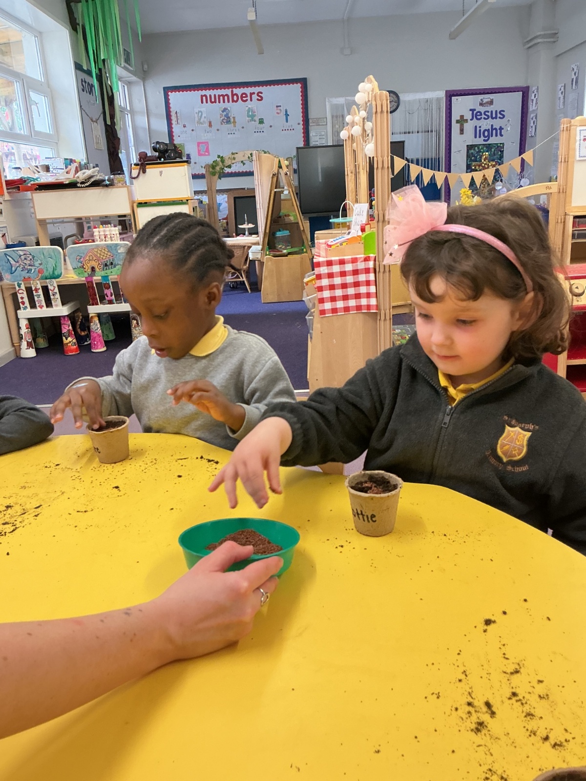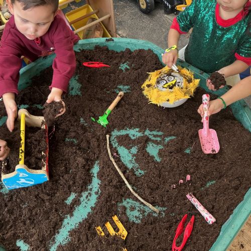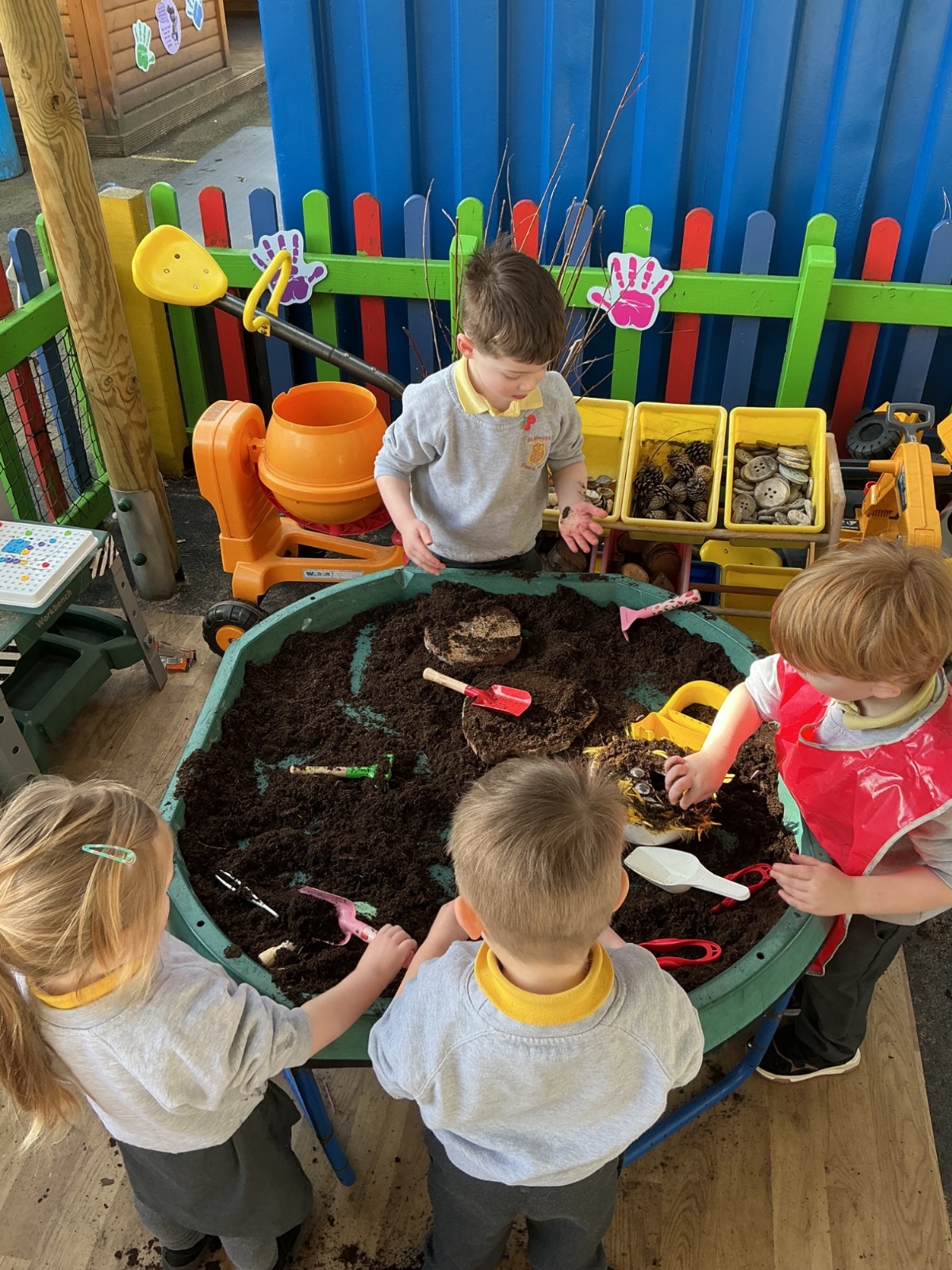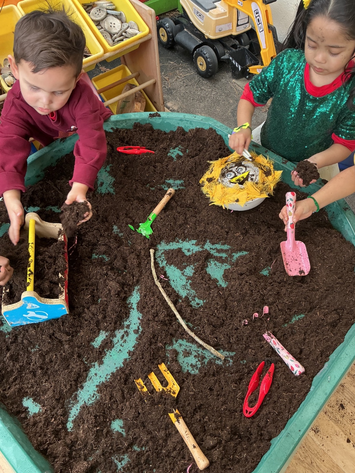 We loved exploring the outdoors, using magnifying glasses to search for signs of new growth and planting seeds in our garden! We learned about caring for living things and enjoyed getting hands-on with digging and planting. This also supported our well-being as we connected with nature and experienced God’s world around us.