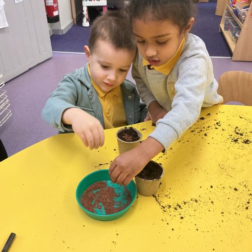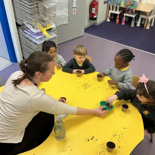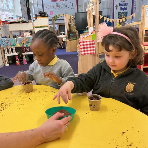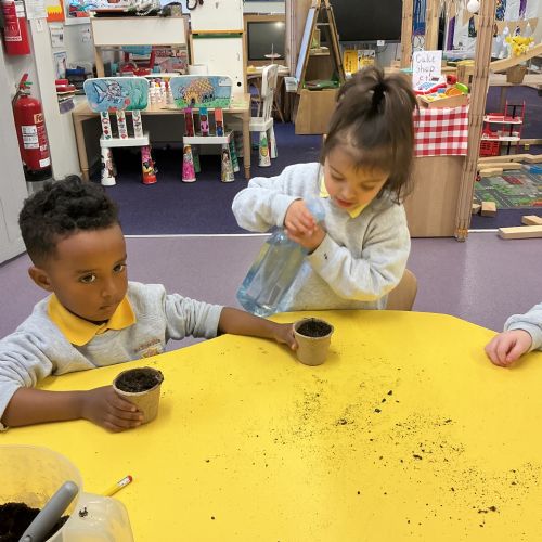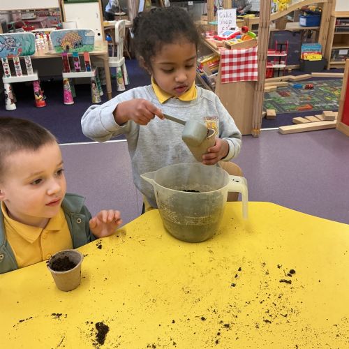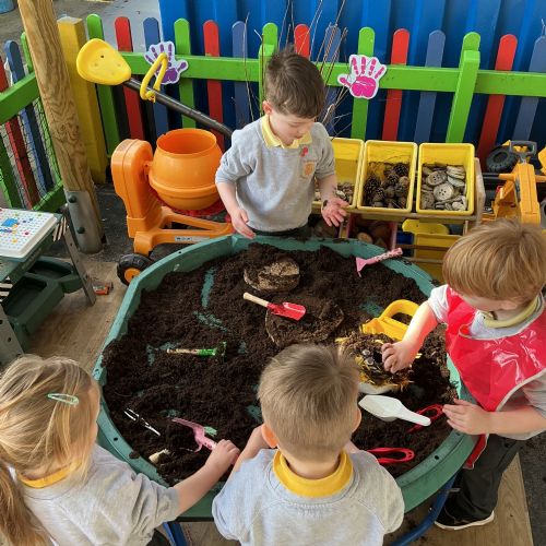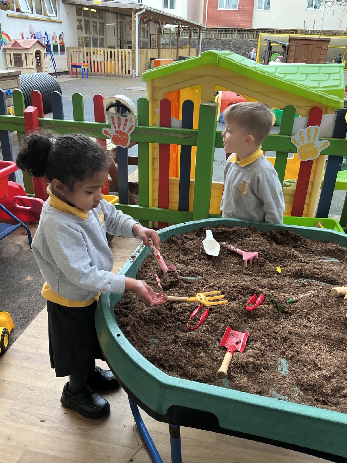 We loved exploring the outdoors, using magnifying glasses to search for signs of new growth and planting seeds in our garden! We learned about caring for living things and enjoyed getting hands-on with digging and planting. This also supported our well-being as we connected with nature and experienced God’s world around us.