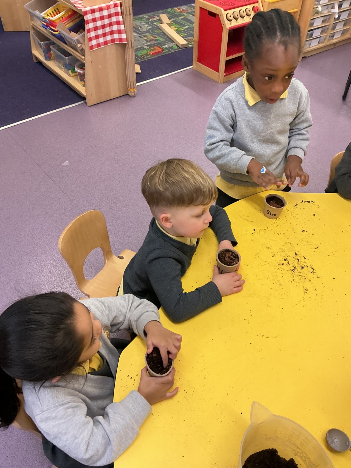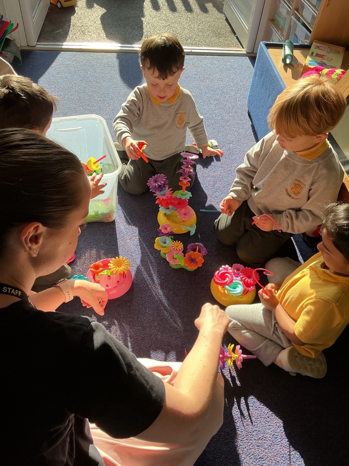 Creativity was a big part of our week too! The children used their gross motor skills to create large-scale artwork and took part in fun crafts. We had a look at the different parts of real daffodils and stretched our creativity to create our own interpretations of them, and they turned out BEAUTIFUL! Our provision areas were full of exciting opportunities as well, like playdough flower decorating, allowing us to explore our interests and build on previous learning.