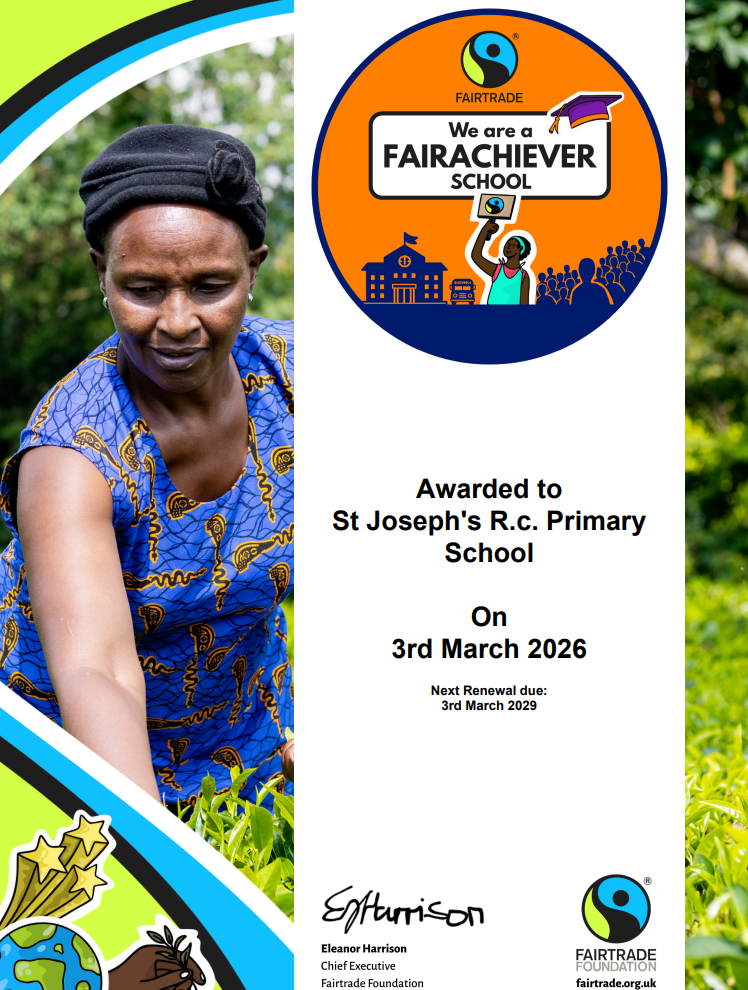 We are proud to announce that St. Joseph's have been reaccredited with the highest level of of recognition for Fairtrade- the Fairachiever Award!